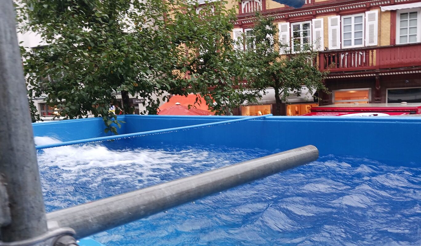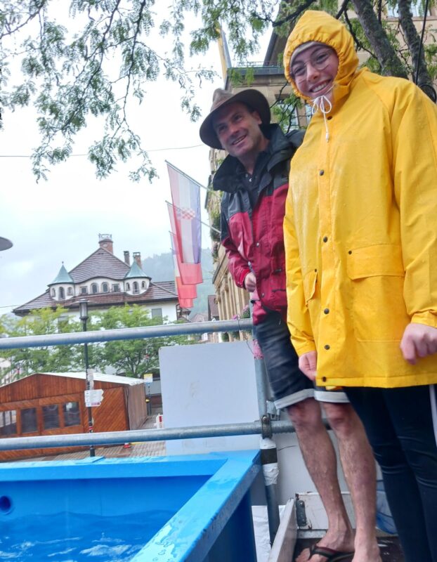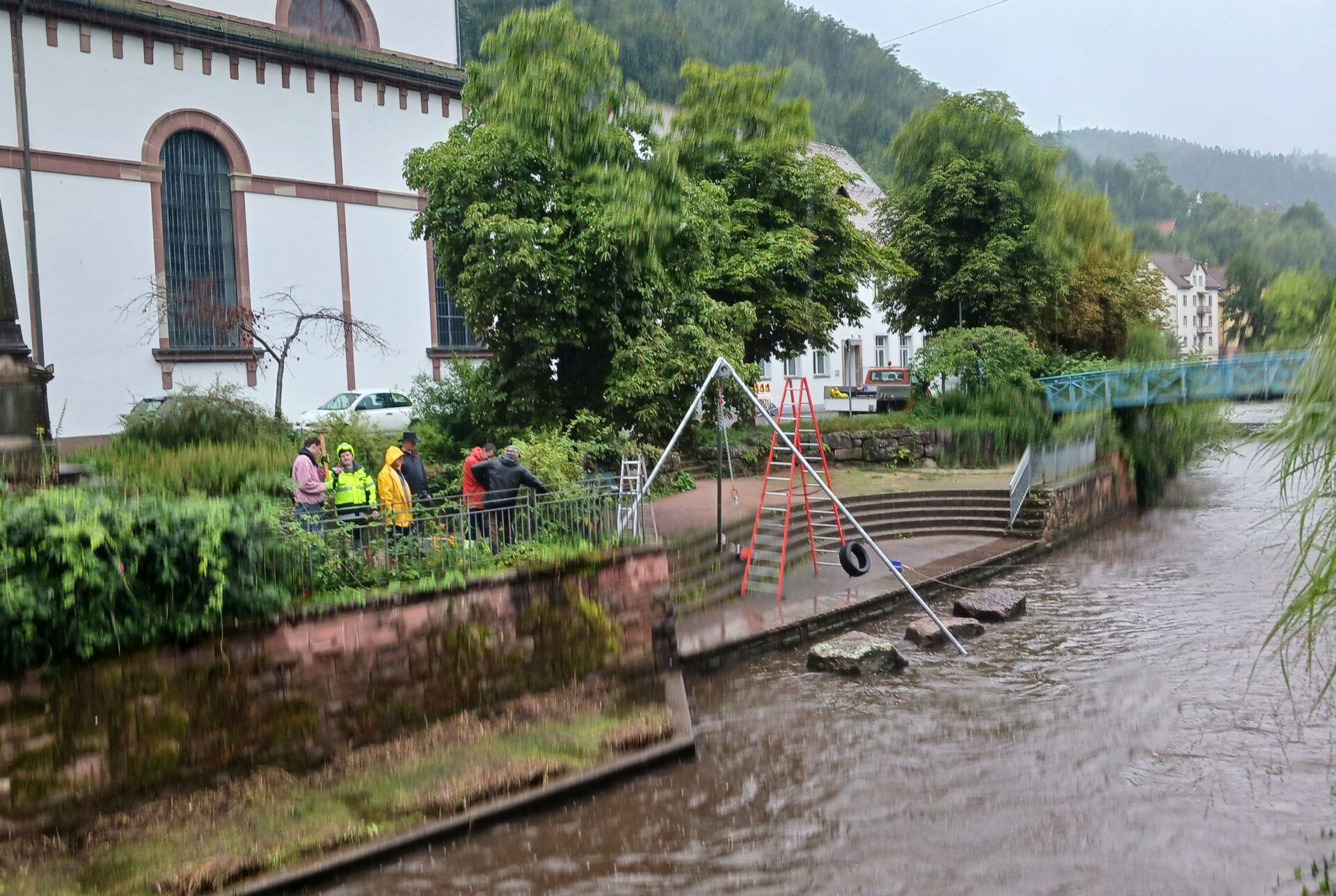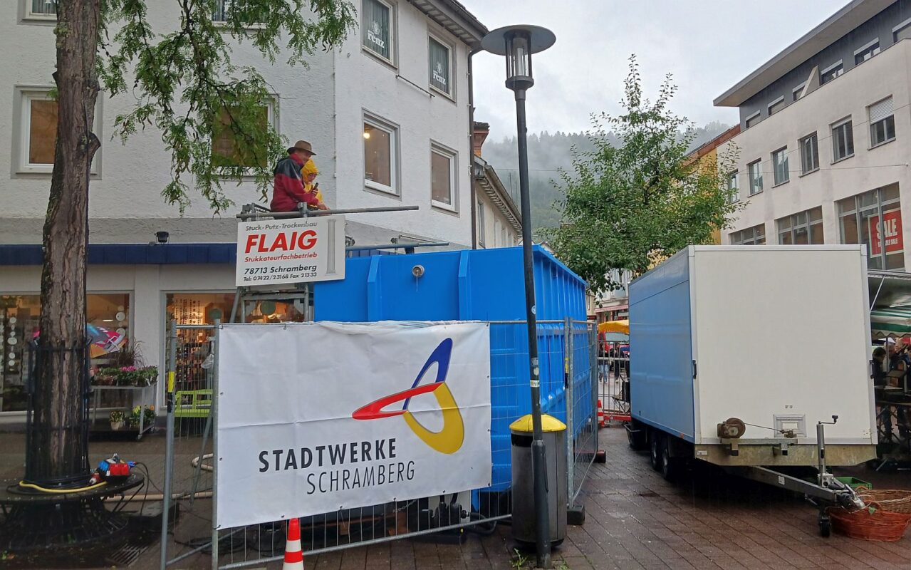 Schramberg. In der Innenstadt wehen die Mini-Schramberg-Fahnen. Bei der St. Mariakirche hat das THW wieder die Seilbahn über den Kirchenbach aufgebaut. Vor dem Haushaltswarengeschäft Schinle füllen am Samstagvormittag die Taucher ihren Tauchcontainer: „Mit Unterstützung von oben“, wie einer scherzt, denn es regnet in Strömen.