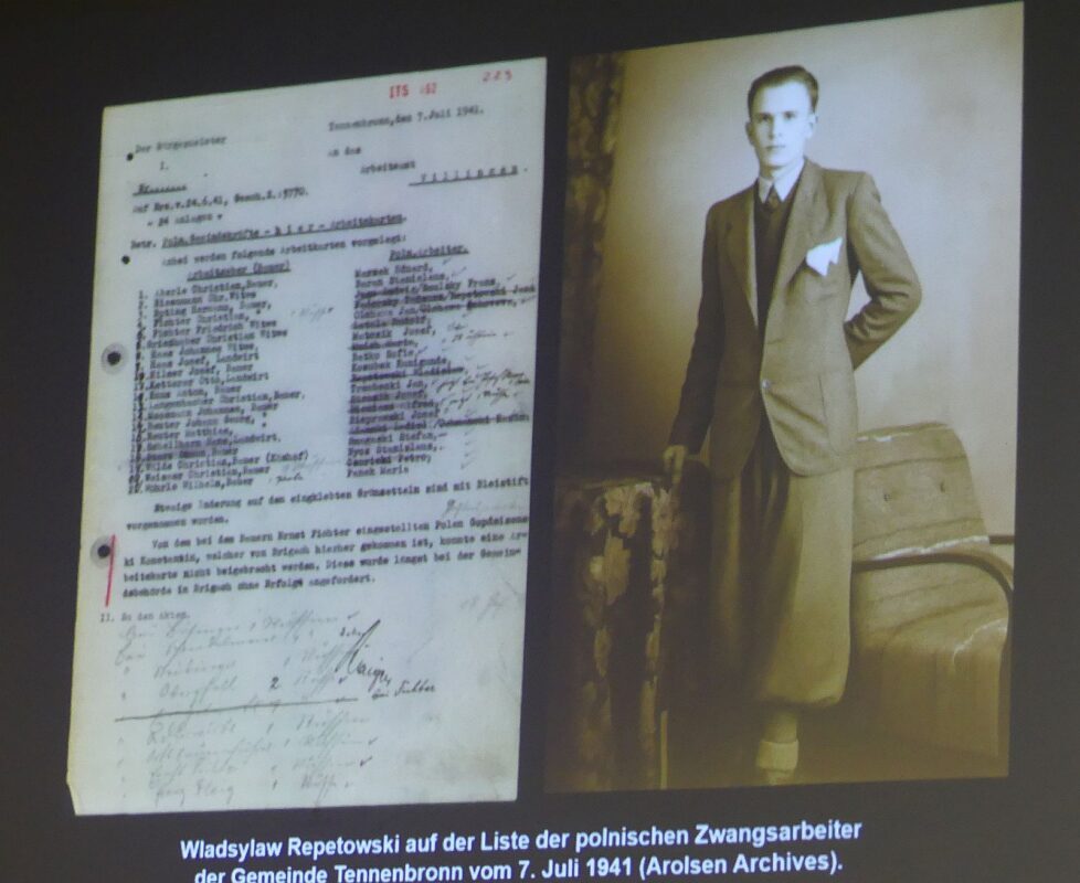 In einer Zeitreise ging es zurück zum Beginn des zweiten Weltkrieges am 1. September 1939. Überfall auf Polen. Schon Ende September 1939 hat das Arbeitsamt in Villingen den Tennenbronner Bürgermeister angeschrieben und erklärt, nein, polnische Kriegsgefangene könne er für seine Bauern nicht anfordern. Aber “polnische Gesindekräfte“. Die deutschen Besatzer hatten in den besetzten Gebieten eine Arbeitspflicht für alle Polen zwischen 18 und 65 erlassen. Im Oktober 1940 waren 400.000 polnische Zwangsarbeiter auf Bauernhöfen in Deutschland im Einsatz.