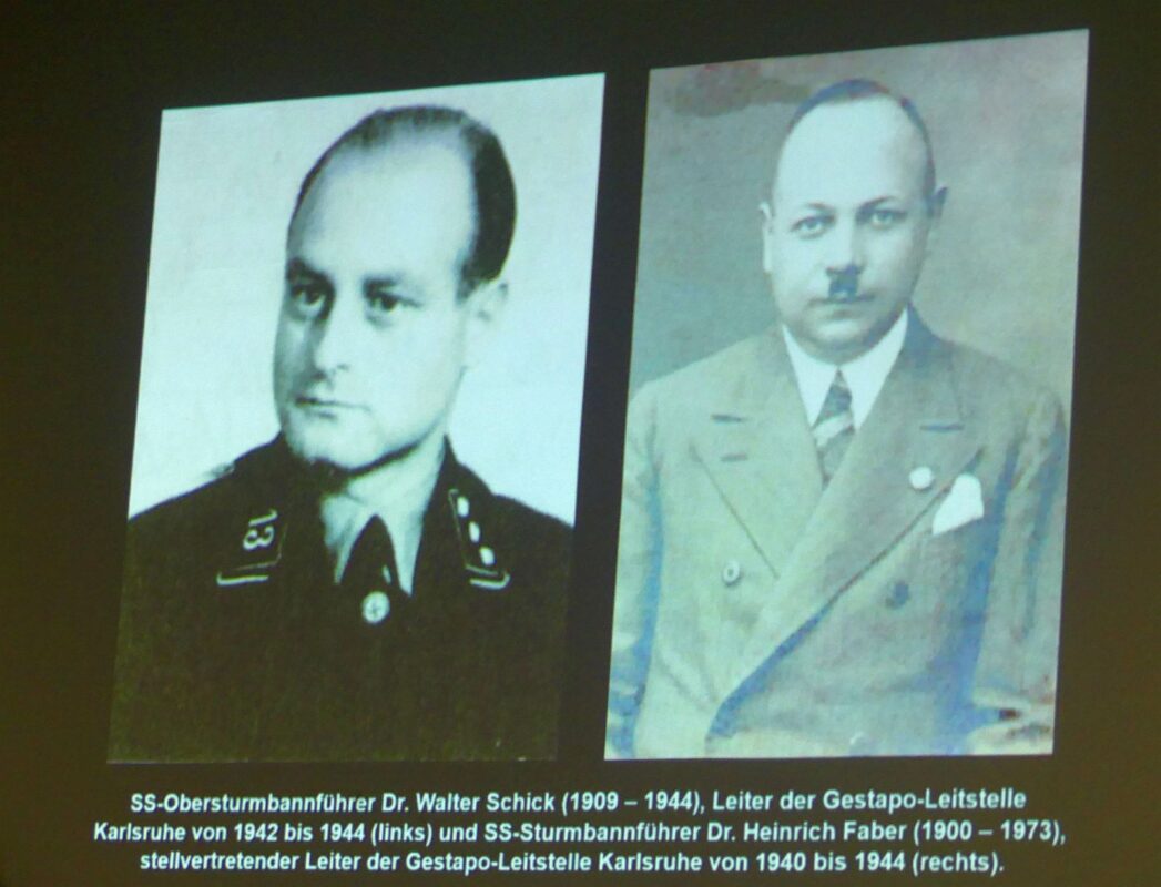 Kohlmann hat recherchiert, wer die Haupttäter bei der Ermordung von Wladyslaw und der KZ-Haft von Agnes waren. Zwei Akademiker, Dr. Walter Schick und Dr. Heinrich Faber. Die beiden waren die Chefs der Gestapo in Karlsruhe. Schick war vermutlich bei der Hinrichtung in Tennenbronn dabei.