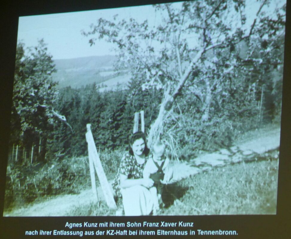 „Auch das Leben von Agnes und Franz war zerstört“, so Gert Kunz. Agnes sei beim Einkaufen beschimpft, Franz in der Schule gehänselt worden. Als Franz später, lange nach dem Krieg, sich in ein Mädchen aus dem Dorf verliebt habe, habe der Schwiegervater in spe zu seiner Tochter gesagt: „Du wirst dich doch nicht mit dem einlassen.“