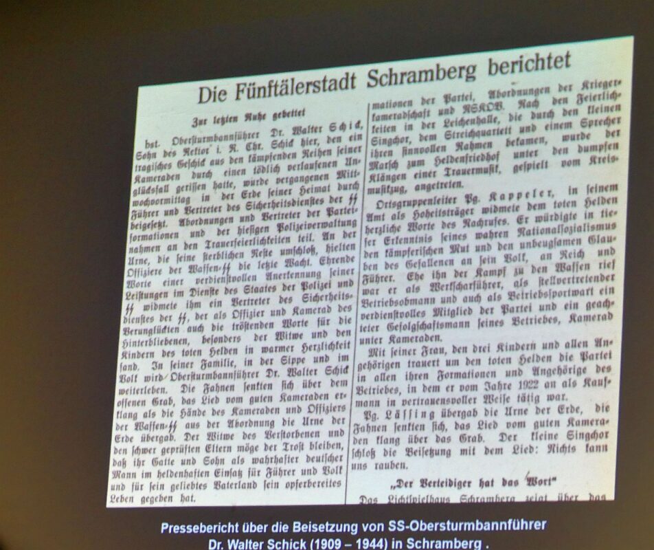 In Karlsruhe leitete Dr. Walter Schick die Gestapo-Leitstelle. Schick stammte aus Schramberg. Sein Vater war Rektor an der damaligen evangelischen Berneckschule. Die Familie lebte in einem Haus am Brestenberg, wie Stadtarchivar Carsten Kohlmann berichtet. Schick hatte nach dem Abitur Jura studiert. Schon 1931 wurde er Mitglied der NSDAP und der SS. Ab 1937 arbeitete er für die Gestapo. Schick sei ein „typischer NS-Jurist und Überzeugungstäter“ gewesen. Er hatte den Rang eines SS-Obersturmbannführers.