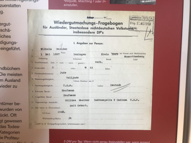 „Vor einiger Zeit fanden wir Dokumente, die belegten, dass Juden auch in unserer Gegend vor ihrer Deportation achtseitige Listen über ihren Besitz ausfüllen mussten. Denn Ziel und Ergebnis der Deportationen war nicht nur ihre Vernichtung, sondern auch, ihr gesamtes Eigentum zu übernehmen“, erklärt Högerle den Hintergrund der Ausstellung. Im Jahr 1938 führten die Nazis eine vollständige Vermögenserfassung der Juden in Gesamtdeutschland durch und führten die sogenannte „Judenvermögensabgabe“ ein. Die Listen über Besitz umgehend vor der Deportation der Menschen seien damals dann zur Nazizentrale in Stuttgart gegangen, wo entschieden wurde, wer über das Eigentum nun verfügen wird.