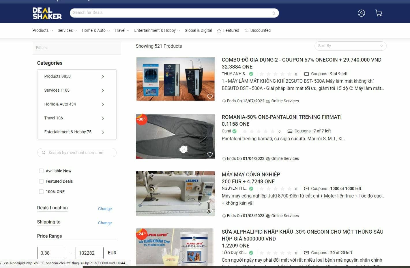 Der „Dealshaker 2.0“, von den OneCoin Organisatoren lange angekündigt, ist nun tatsächlich online. Auf dieser Plattform können Händler ihre Produkte und Dienstleistungen weltweit anbieten. Kaufen kann man die Produkte mit echtem Geld, also Dollar oder Euro und OneCoin.