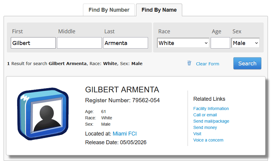 Für Gilbert Armenta, Ruja Ignatova zweiten Geliebten öffnen sich die Gefängnistore schon erheblich früher. Armenta, zu fünf Jahren Haft verurteilt, verbüßt seit 2023 seine Strafe in Florida in einem Gefängnis bei Miami. Laut Häftlingskartei wird er am 5. Mai 2026 entlassen. Dabei wird seine Zeit in U-Haft und unter Hausarrest auf die Strafe angerechnet.