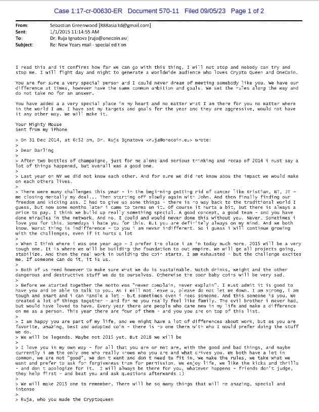 Und er verspricht Ruja: „I will fight day and night to generate a worldwide audience who loves crypto Queen and onecoin.“ Er werde Tag und Nacht dafür kämpfen, ein weltweites Publikum zu schaffen, das die Cryptoqueen und OneCoin liebe. Sie habe eine sehr besonderen Platz in seinem Herzen, versichert Greenwood. Sie hätten dieselben Ambitionen und Ziele. „Wir haben die Regeln gemacht und akzeptieren kein Nein als Antwort.“