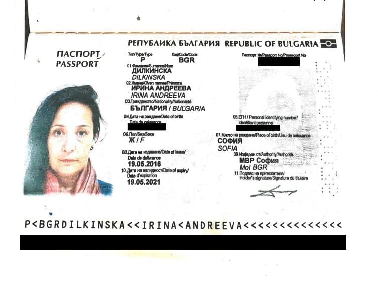 Irina Dilkinskas bulgarischer Pass. Archiv: him