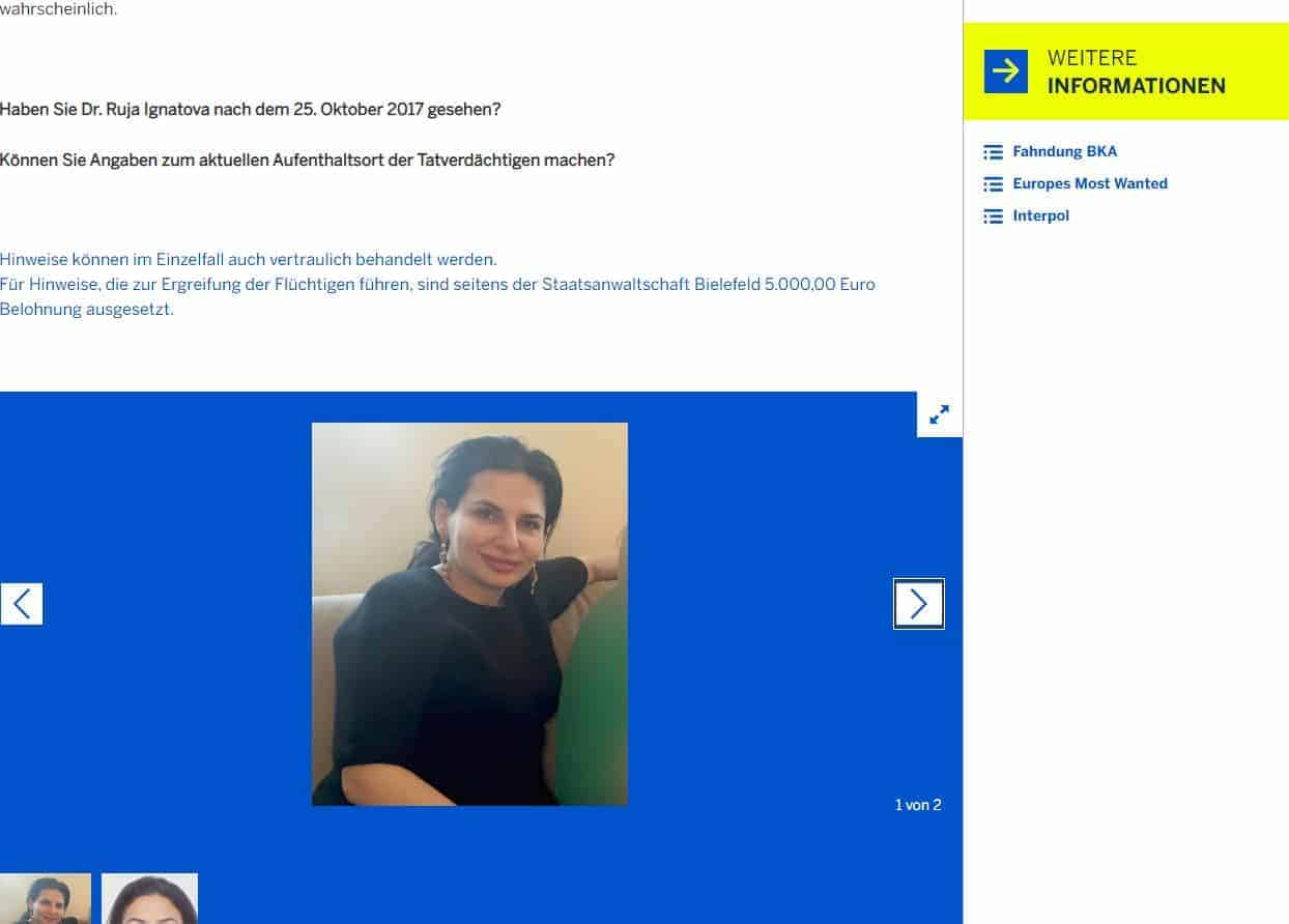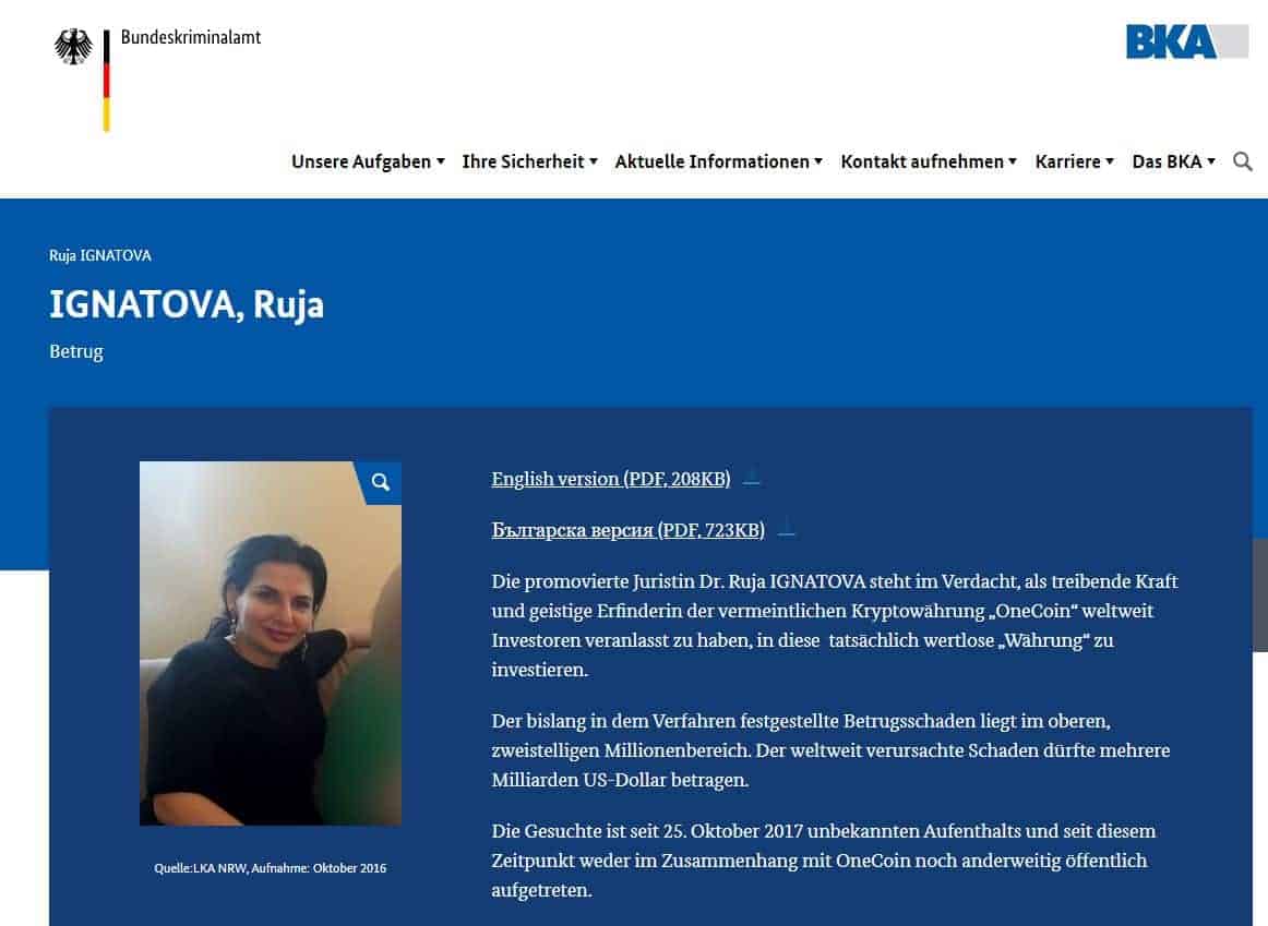 Bekanntlich ist Ignatova am 25. Oktober 2017 in Athen von der Bildfläche verschwunden. Der Fahndungsaufruf bestätigt, das Ignatova die deutsche Staatsbürgerschaft besitzt.