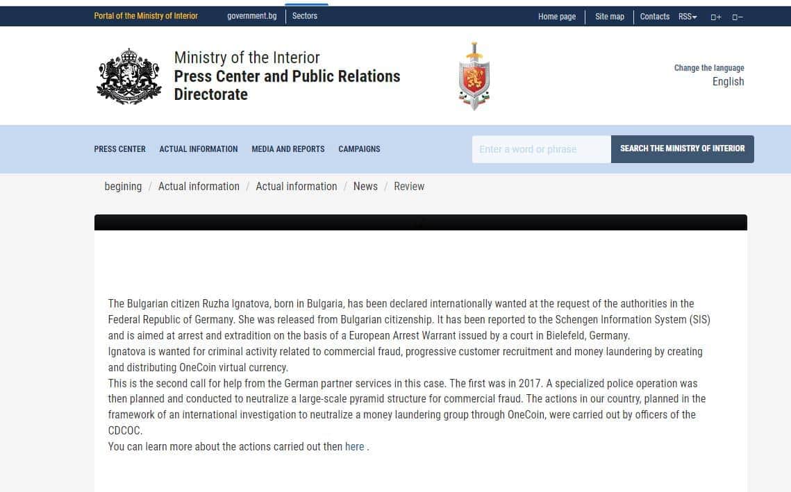 Bereits Mitte April hatten die bulgarischen Behörden darüber berichtet, dass die Staatsanwaltschaft Bielefeld einen internationalen Haftbefehl für Ignatova beantragt habe .