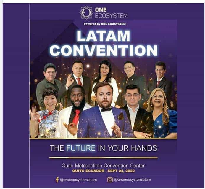 Es geht aber auch größer: Am 24. September lud die neue Firma zur „Latam Convention“ ins Quito Metropolitan Convention Center in Ecuador ein. Auf dem Plakat unter anderem der neue „CEO“ Ventsislav Zlatkov und Captain King Jayms. Bis zu 2000 Personen erwartete das Convention Center in Quito.