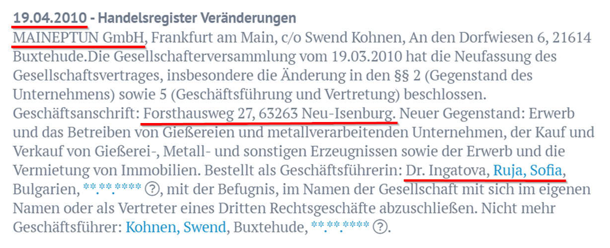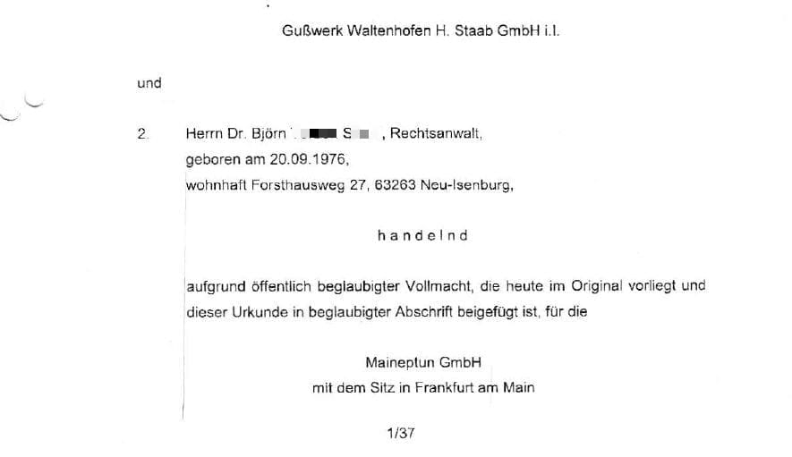 Björn S. hat nach Informationen der NRWZ gemeinsam mit Ruja Ignatova in Konstanz studiert. 2010 haben die beiden geheiratet. Später hat Ignatova eine Firma aufgekauft und in Rilacap umbenannt. Rilacap hatte dort ihren Sitz, wo auch eine Firma von Björn S., die Matunos, ihren Sitz in Neu-Isenburg hat. Als Ignatova dann mit einer weiteren Firma „Maineptun“ die Verträge für die Übernahme der Gießerei in Waltenhofen im Allgäu schloss, war Björn S. als Anwalt beteiligt.