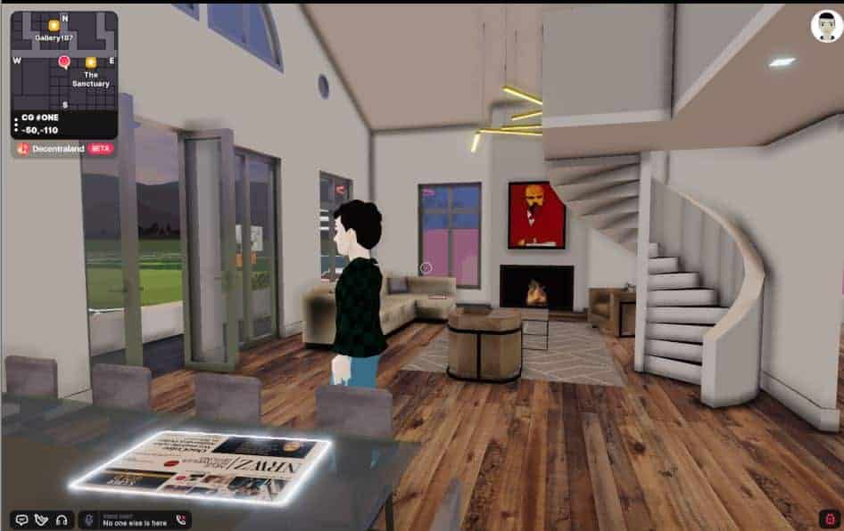 Wer mit Videospielen vertraut ist, kann sich mit einem Avatar in der Luxuswohnung in Kensington umschauen – und findet dort in der Küche beispielweise einen Teller mit einem Porträt Rujas. Über dem Kamin hängt ein Leninporträt von Andy Warhol.