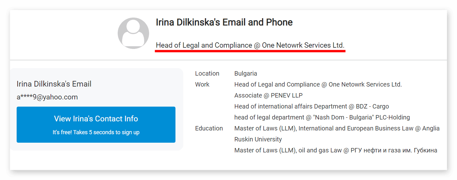 Im Verfahren gegen Mark Scott hat Konstantin Ignatov auf die Frage, wer bei OneCoin die meisten dieser Tarnfirmen aufgezogen hat, geantwortet: „Irina Dilkinska.“