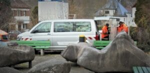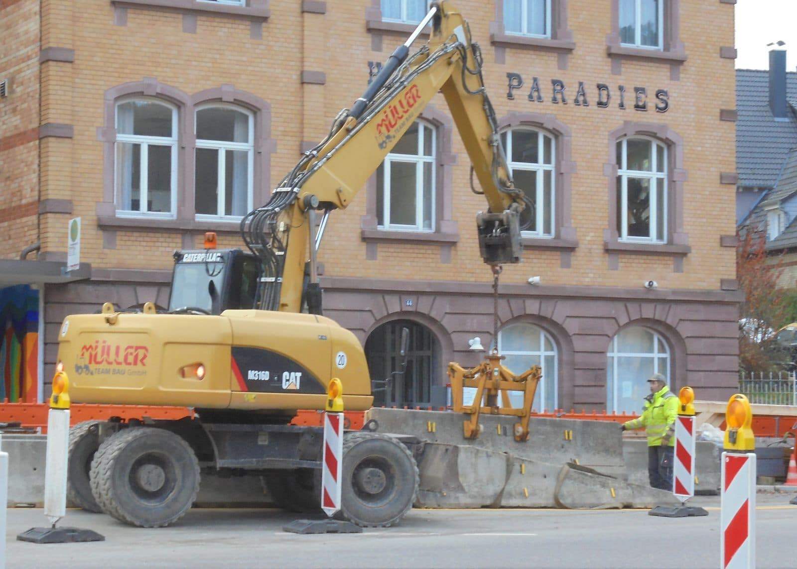 Seit dem Morgen räumen die Bauarbeiter de bisherige Baustelle am Paradiesplatz ab. Zugleich sind Monteure dabei die Ampelschaltung an der Kreuzung weder auf Normalbetrieb umzurüsten.