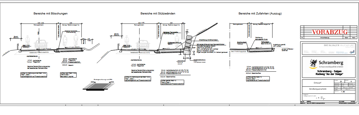 Die weit ausgearbeiteten Pläne hätten vorgesehen, dass bergauf ein kombinierter Rad- und Gehweg mit drei Meter breite und einem 50 Zentimeter breiten Schutzstreifen angelegt wird.