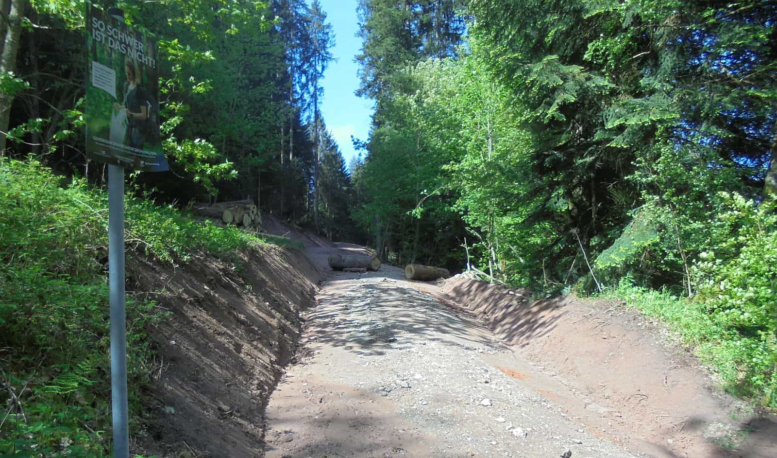 Bis Jahresende werde dieser Weg fertig. Derzeit werde noch Holz abtransportiert und die Böschungen angelegt. Dann komme der Belag drauf.