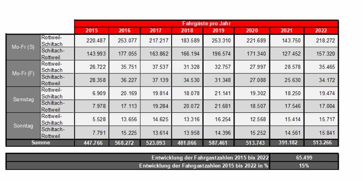 Die beiden Corona-Jahre 2020 und 2021 brachten starke Rückgänge mit sich, die sich aber 2022 wieder ausglichen. Und dies trotz der im letzten Jahr erforderlichen Fahrplanänderung wegen des Schienenersatzverkehrs im Kinzigtal. In der Vorlage heißt es, dass durch längerfristige Umleitungen oder Straßensperrungen eine „unruhige Leistungserbringung“ stattfinde. Das führe zu Fahrgastrückgängen. „Sobald die Fahrleistung stabil und verlässlich erbracht werden kann, steigen die Fahrgastzahlen wiederum an, da das Vertrauen in den ÖPNV wieder vorhanden ist.“