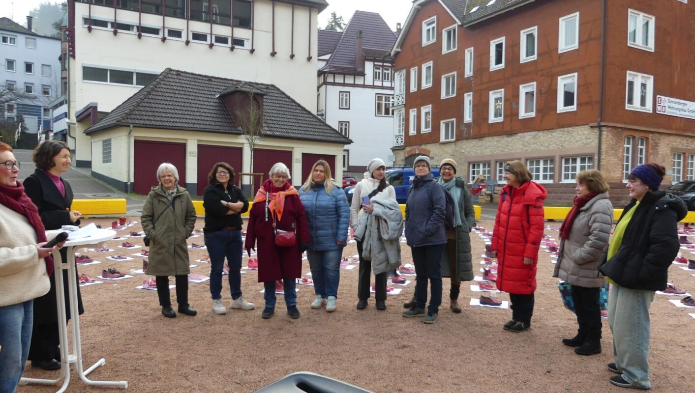 Alljährlich werden in Deutschland mehr als 300 Frauen getötet, nur weil sie Frauen sind. Am Samstag hat der Frauenbeirat in Schramberg mit seiner Aktion „Rote Schuhe – Femizide stoppen“ an diese Frauen erinnert. Jedes Paar Schuhe stand dabei symbolisch für Frauen, die durch geschlechtsspezifische Gewalt ihr Leben verloren haben.
