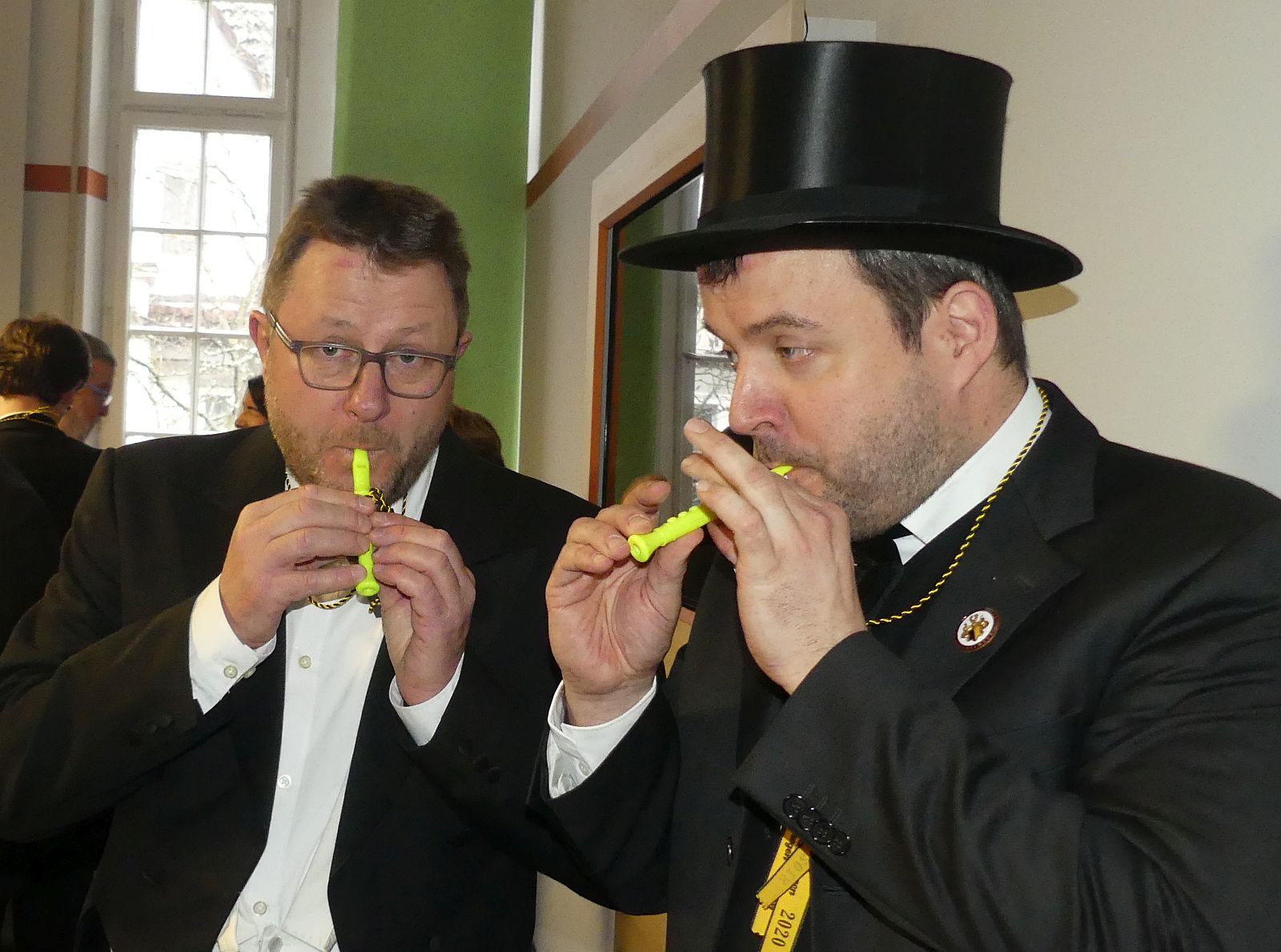 Und Michael Melvin bewies seine Musikalität und entlockte dem Miniplastikteil doch tatsächlich die Melodie des Narrenmarschs.
