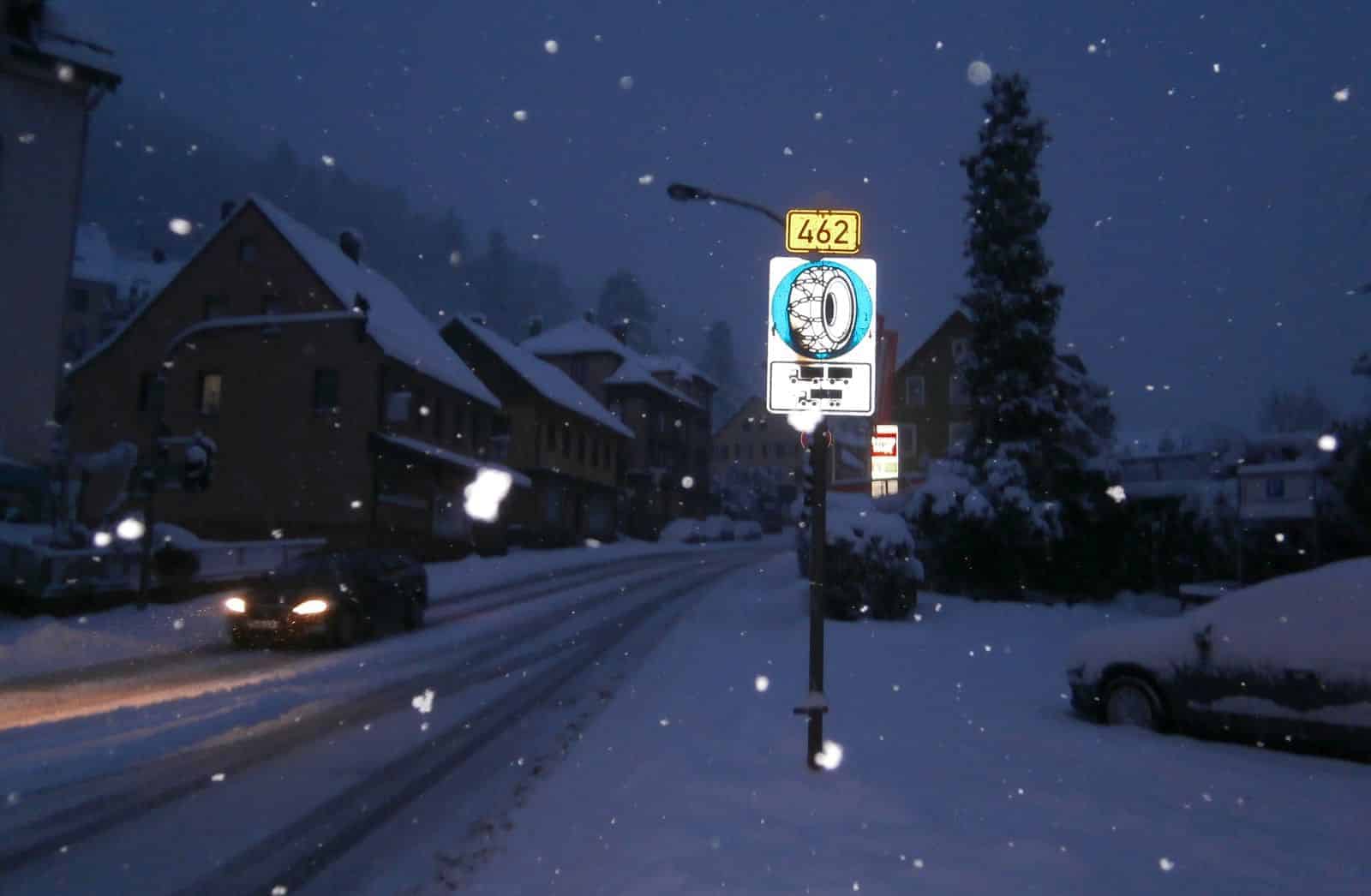Immer wieder behindern oder blockieren LKWs beim Wintereinbruch die Strecke zwischen Schramberg-Tal und Sulgen. Querstehende Lastzüge, die mit Sommerreifen unterwegs sind, sind regelmäßig zu erleben. Zwar weisen schon bisher bei entsprechenden Wettervorhersagen Klappschilder auf die Schneekettenpflicht hin. Doch diese übersehen die Trucker immer wieder.