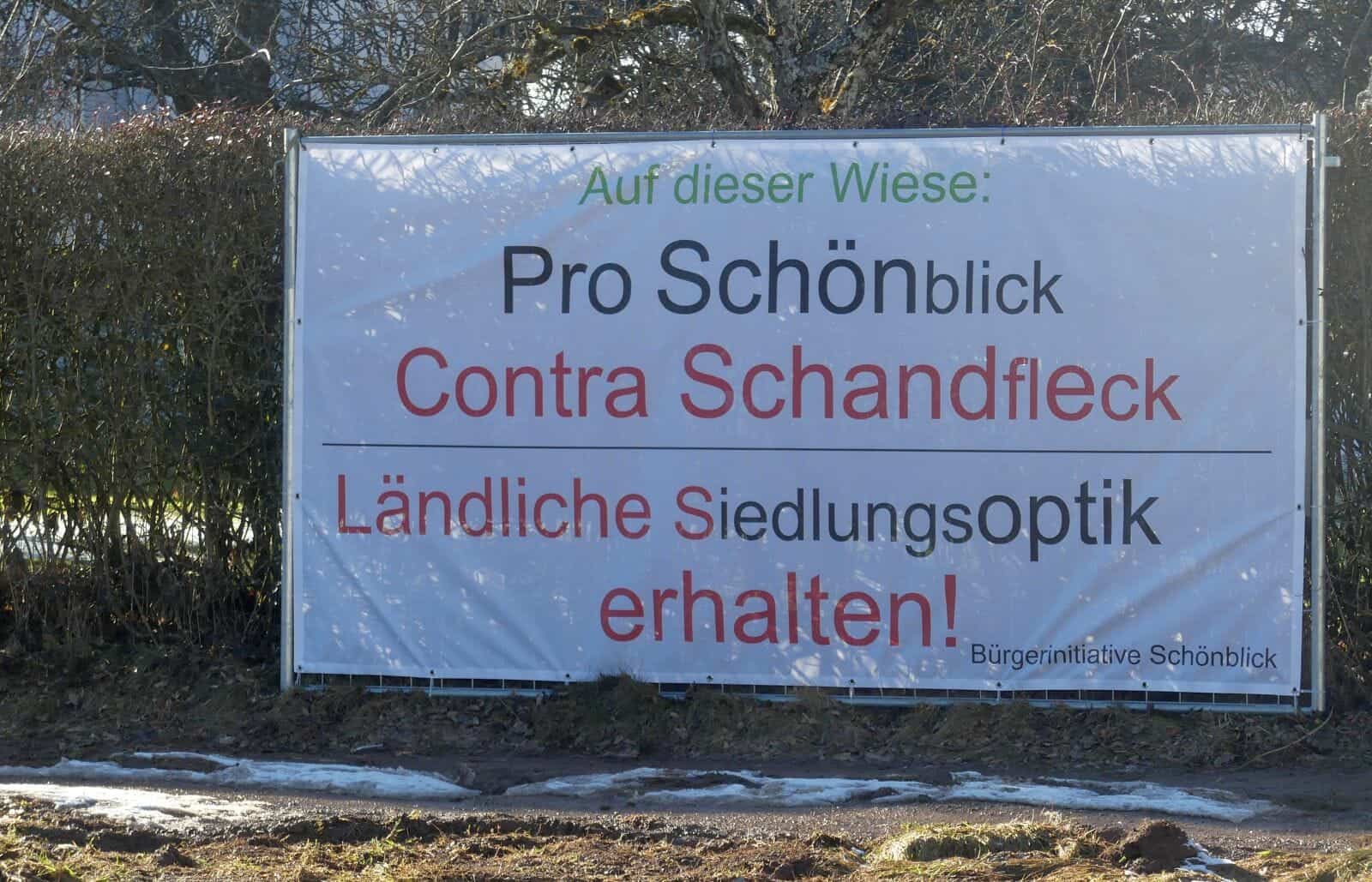 Bereits im Jahr 2021 hätten sich Bürger in Sulgen zusammengeschlossen, nachdem gerüchteweise bekannt geworden sei, dass „auf dem Schönblick“ ein freies Baugrundstück mit Mehrfamilienhäusern bebaut werden soll.