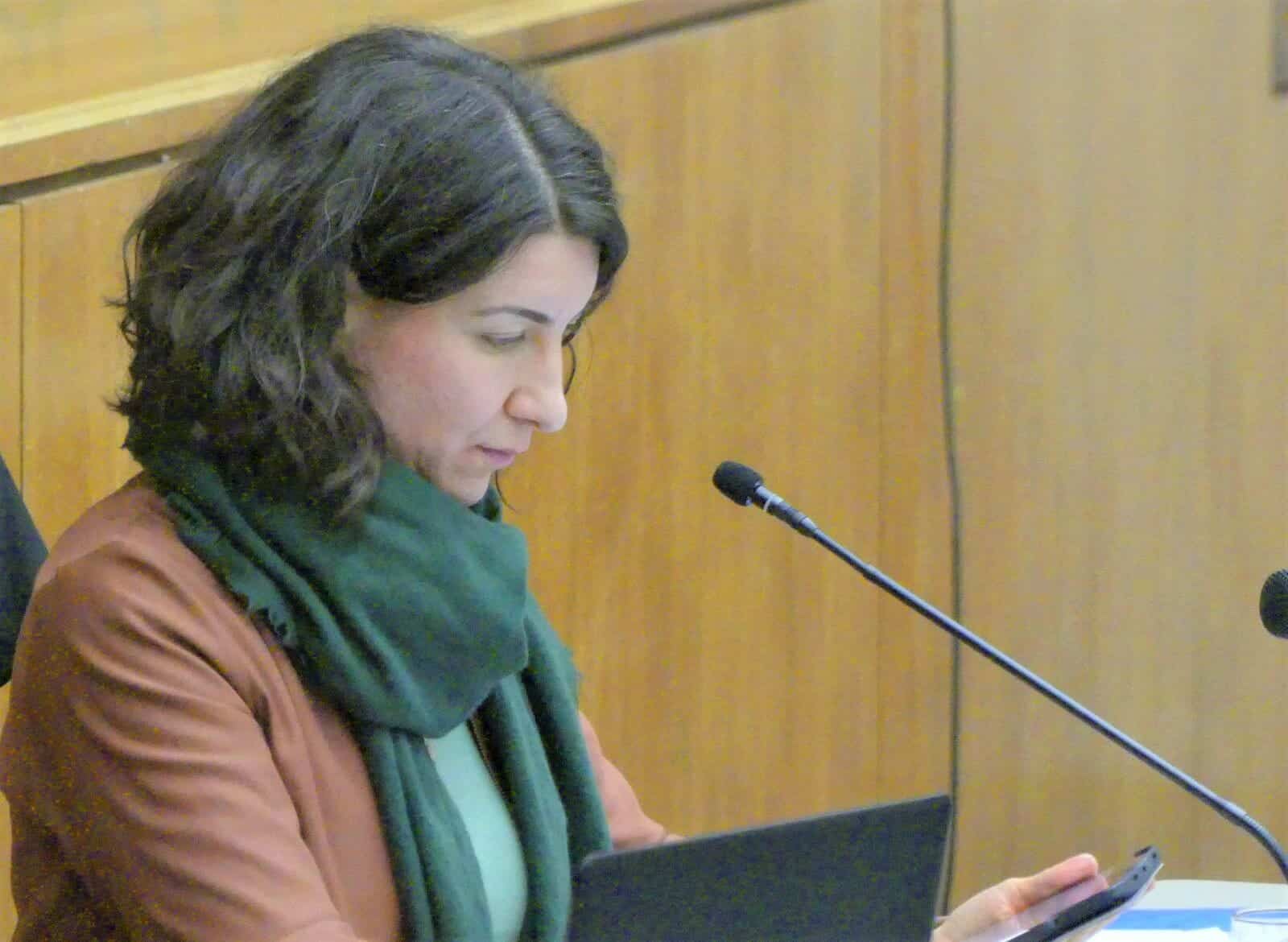 Die Sprecherin der BI Schönblick Simone Fader in der Bürgerfragestunde. Foto: him
