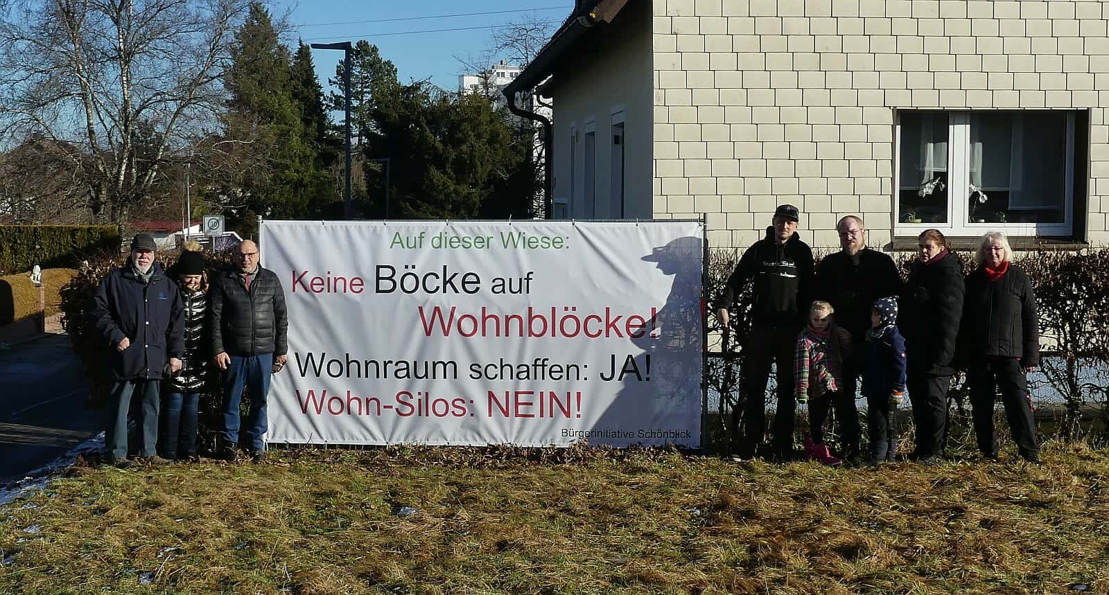 Anwohner protestieren gegen die geplante Bebauung. Foto: him