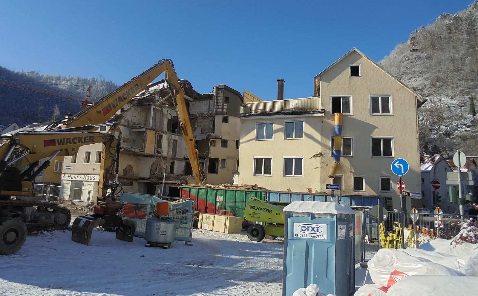 Im Zuge des Sanierungsgebiets Talstadt-West gibt es für die Abbrucharbeiten einen Zuschuss. Da das Sanierungsgebiet am 30.April 2023 endgültig beendet wird, war nun Eile geboten.
