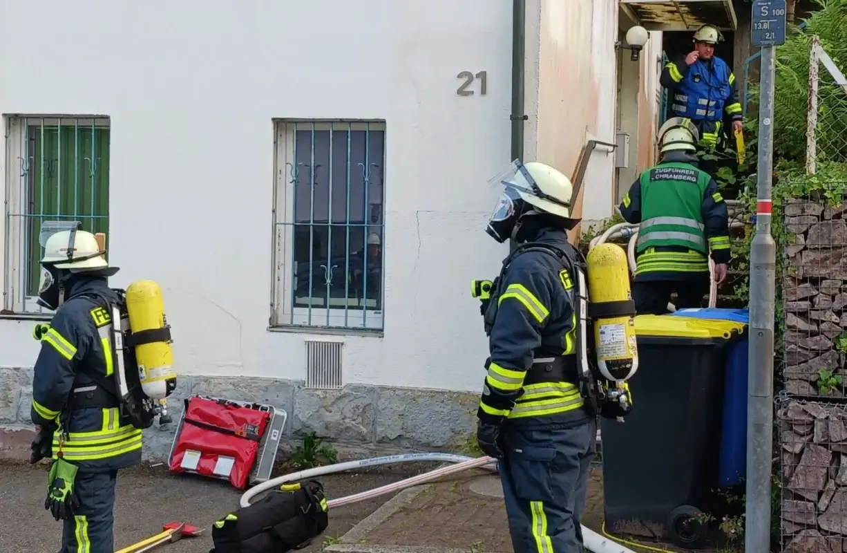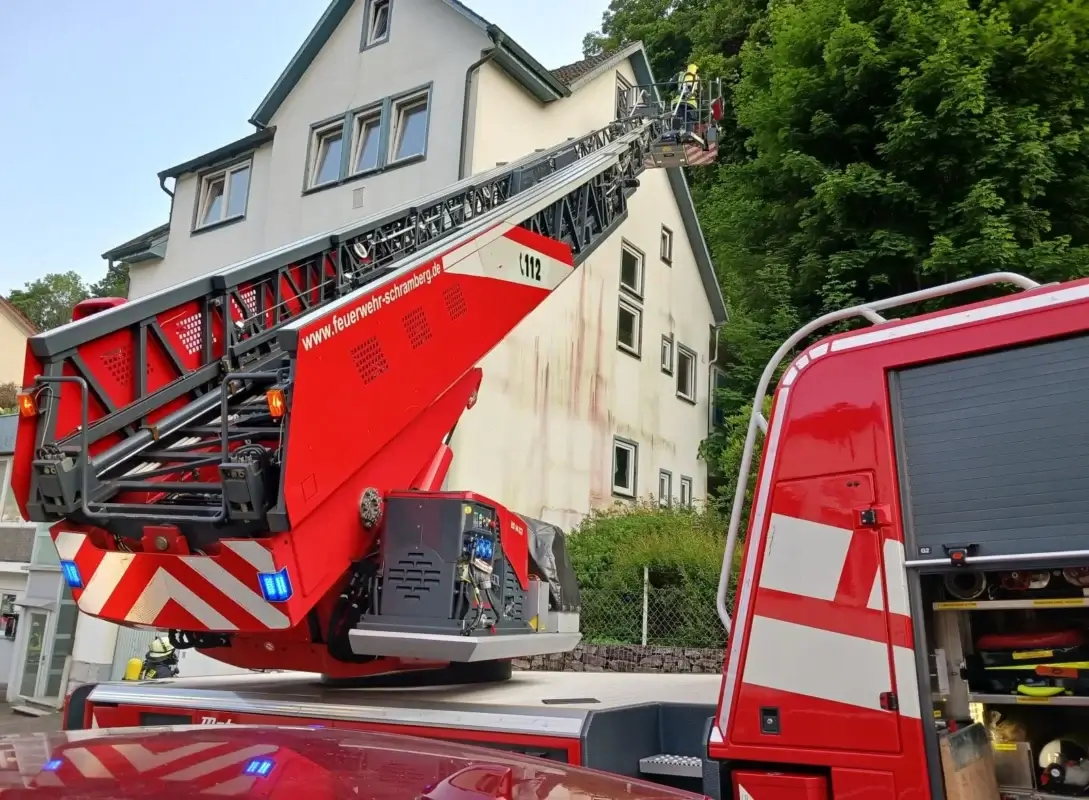 Gegen 19.10 Uhr wurde der Alarm für Feuerwehr und DRK ausgelöst, auch die Polizei ist vor Ort. Kräfte der Schramberger Wehr drangen unter Atemschutz in das Gebäude vor. Rauch drang unterdessen aus einem der Fenster.