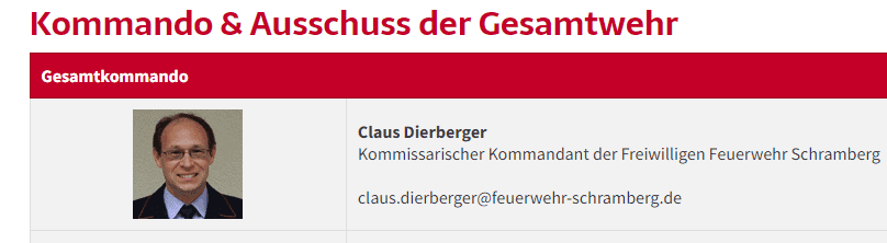 SCHRAMBERG  (him) – Nun ist es amtlich: Claus Dierberger ist „Kommissarischer Kommandant der Freiwilligen Feuerwehr Schramberg“. Auf der Homepage der Freiwilligen Feuerwehr hat die Feuerwehr nun das Geheimnis über die Nachfolge von Stadtbrandmeister Werner Storz gelüftet. Wie berichtet, hatte Storz  bei einer Hauptversammlung im Oktober keine Mehrheit erhalten. Daraufhin gab es eine monatelange Nachfolgersuche.