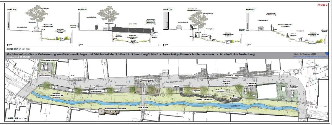Die Schiltach würde durch die Reduzierung von Parkplätzen und die Entfernung des befestigten Bachbetts eine Revitalisierung und eine naturnahe Umgestaltung erfahren. Am Ufer wären Sitzstufen, Sitzsteine, ein Uferweg und eine Treppenanlage geplant. Gleichzeitig würde die Gewässerökologie verbessert.