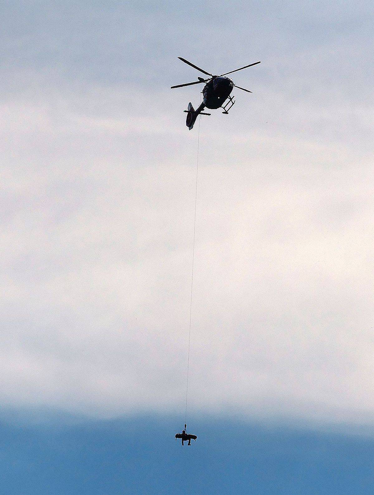 Weil der Transport des Verletzten von der Ruine ins Tal per Trage schwierig und gefährlich war, hätten sich Feuerwehr, Rettungsdienst und Bergwacht darauf verständigt, eine Windenrettung per Hubschrauber zu organisieren. Dazu musste der Rettungshubschrauber aus Freiburg herfliegen, weil der Hubschrauber Christoph 11 in Villingen-Schwenningen keine Seilwinde hat. „Der Hubschrauber hat den Verletzten dann aus dem Gelände ausgeflogen“, so Weiss.