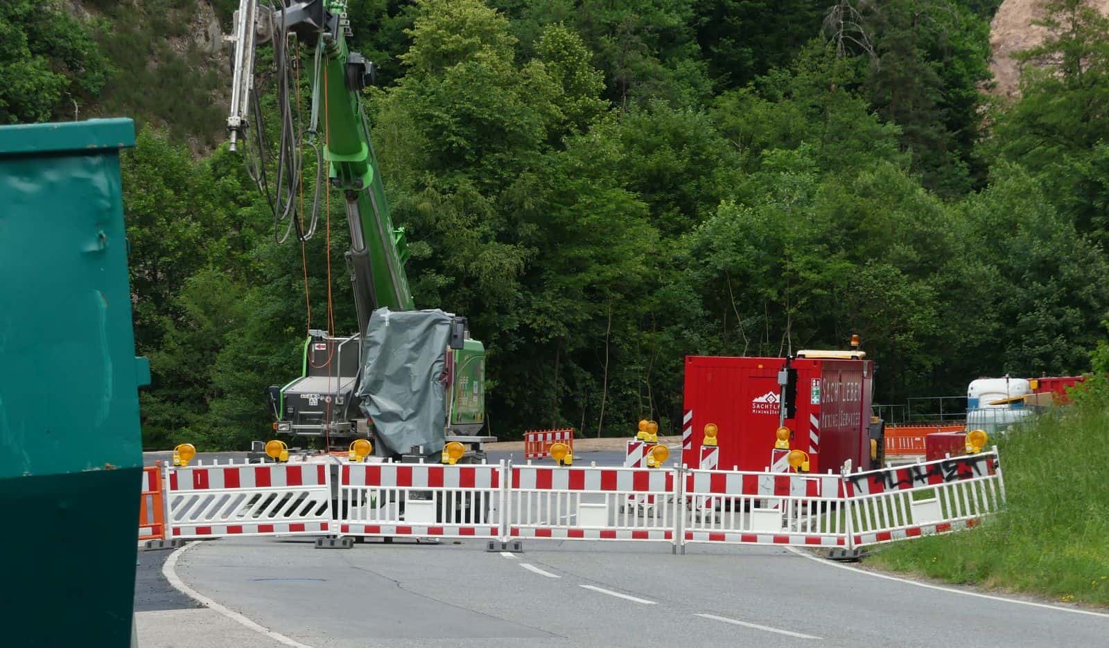 Seit Dienstag ist die Bundesstraße für die Zeit der Pfingstferien, also Ende nächster Woche, komplett gesperrt, weil gefährliche Arbeiten anstehen, die nur so zu schaffen sind. Die Mineure der Firma Sachtleben „schaffen rund um die Uhr, Tag und Nacht“, versichert Joachim Hilser vom Straßenbauamt. „Die Mitarbeiter und die Firma ziehen wieder wunderbar mit.“ Wenn man Anfang nächster Woche sehe, dass man früher fertig werde, werde die Sperrung auch früher wieder aufgehoben, so Hilser.