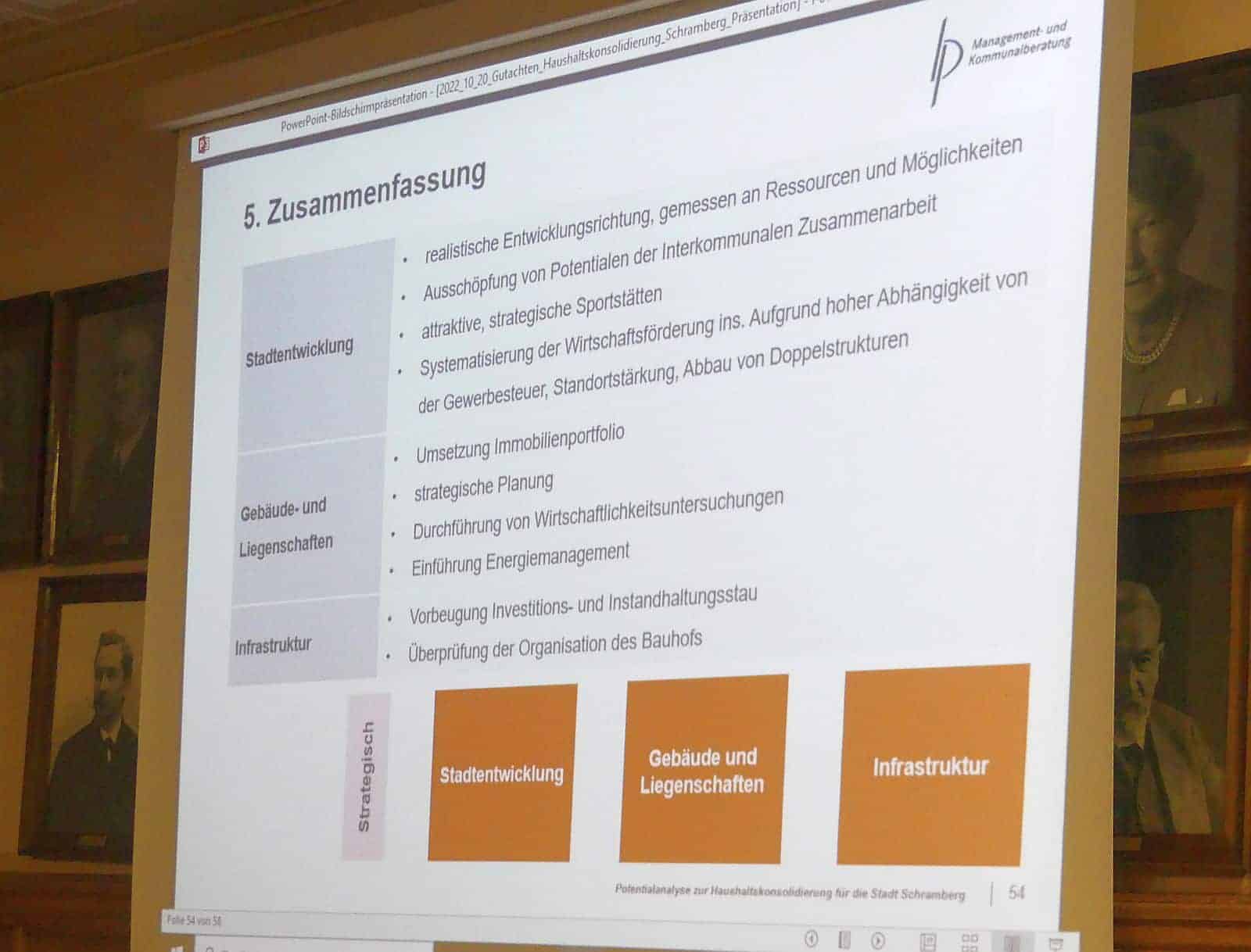 Oberbürgermeisterin Dorothee Eisenlohr erinnerte vorab an ihre Rede zum Haushalt 2022, dass sie eine solche Haushaltspotenzialanalyse in Auftrag geben wolle. Ein „Blick von außen“ sei ihr wichtig. Es sollten transparent und ungefiltert die Erkenntnisse weiter gegeben werden.