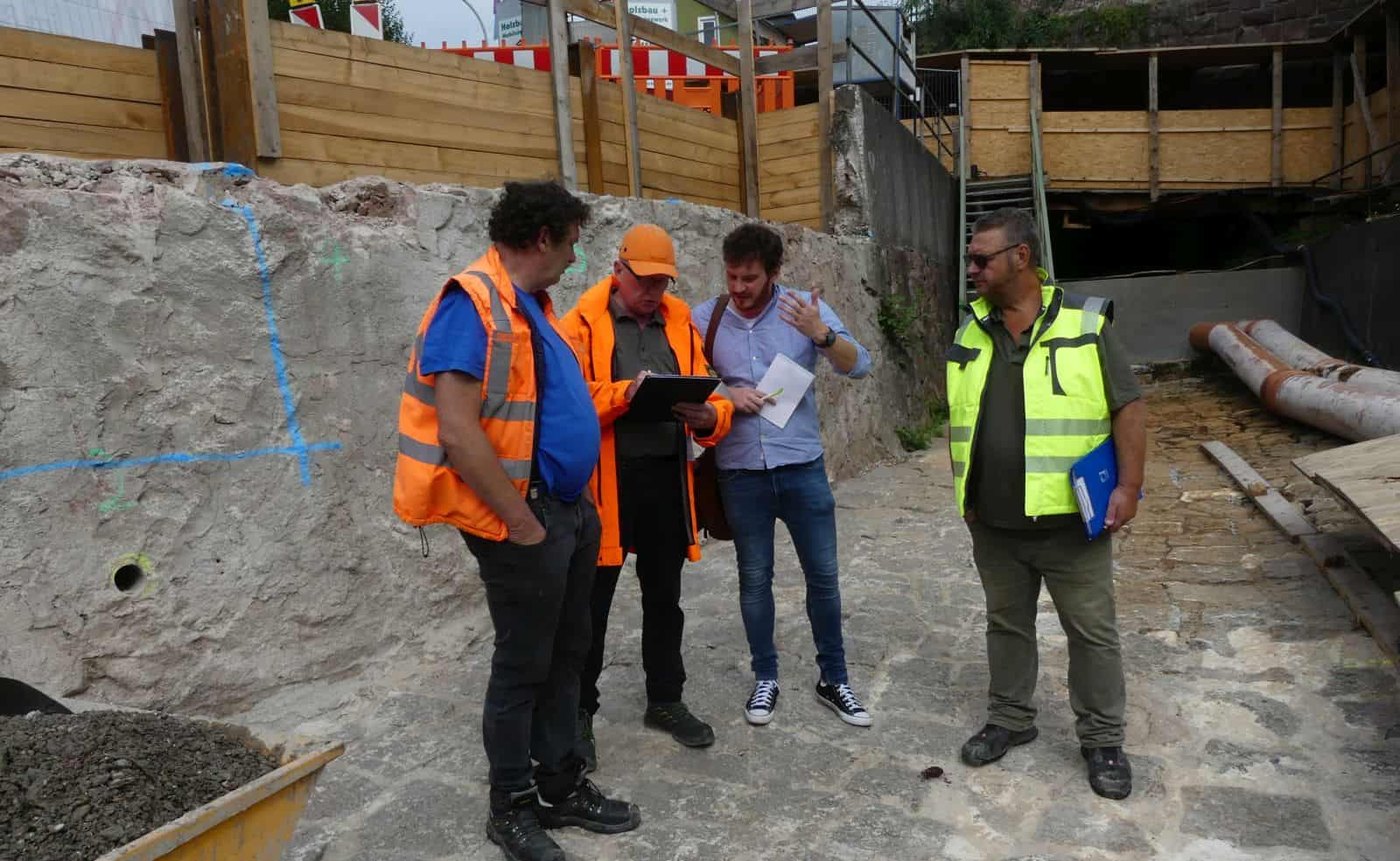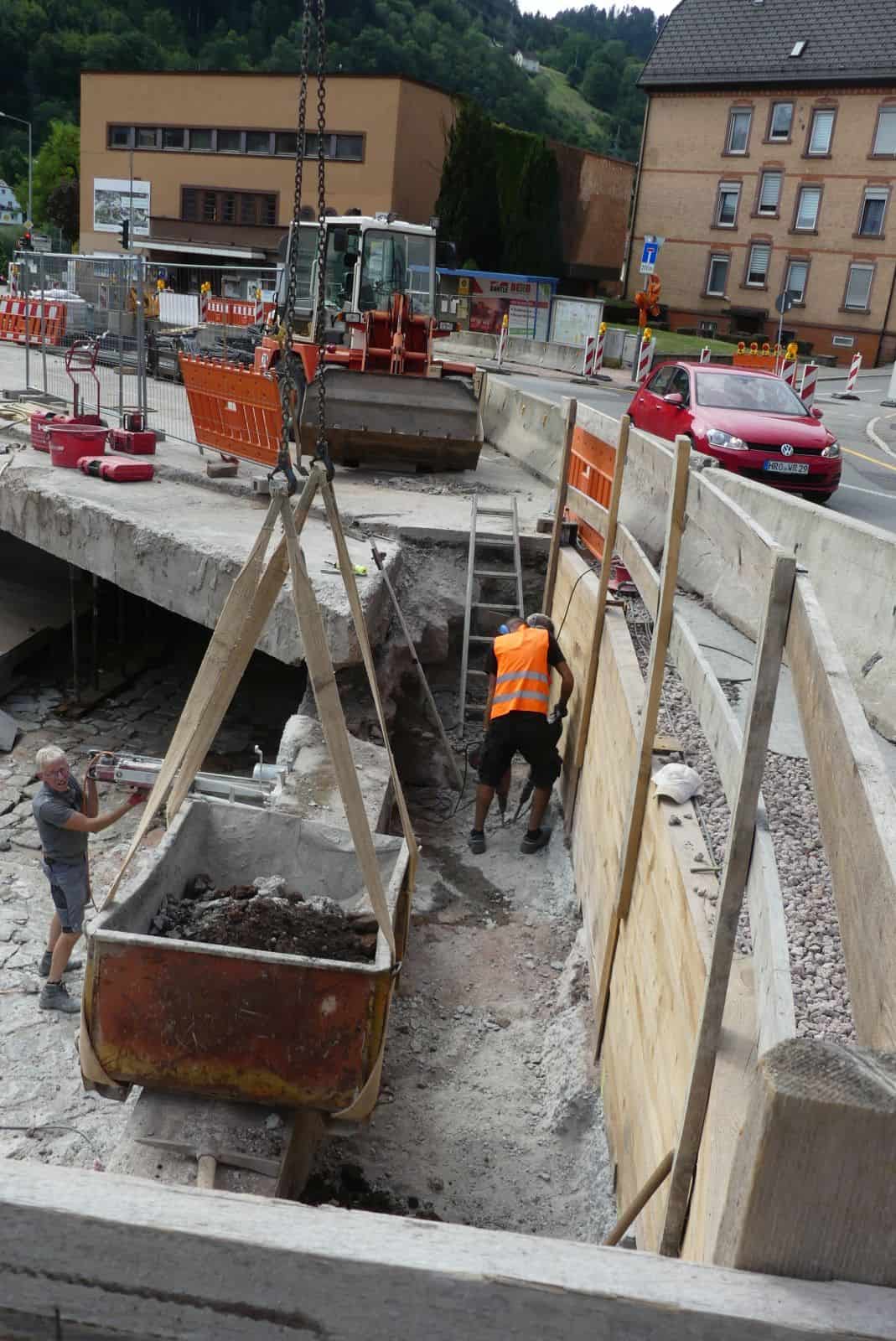 Grund dafür sind die nicht ausreichend stabilen Seitenmauern am Bacheinlauf. Dort, so Holzbaur, müssten erst die alten Mauern abgetragen werden. Dies geschieht derzeit. Dann betonieren die Bauarbeiter neue Fundamente, auf die dann die neuen Stützmauern kommen. Schließlich betonieren sie die neue Überbauplatte über den Bach.