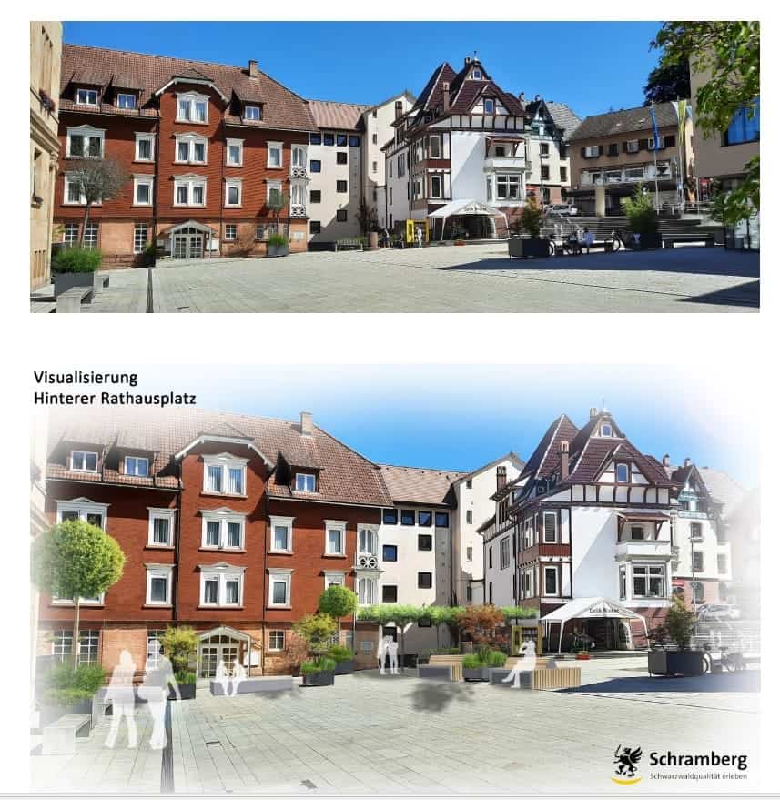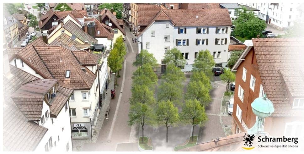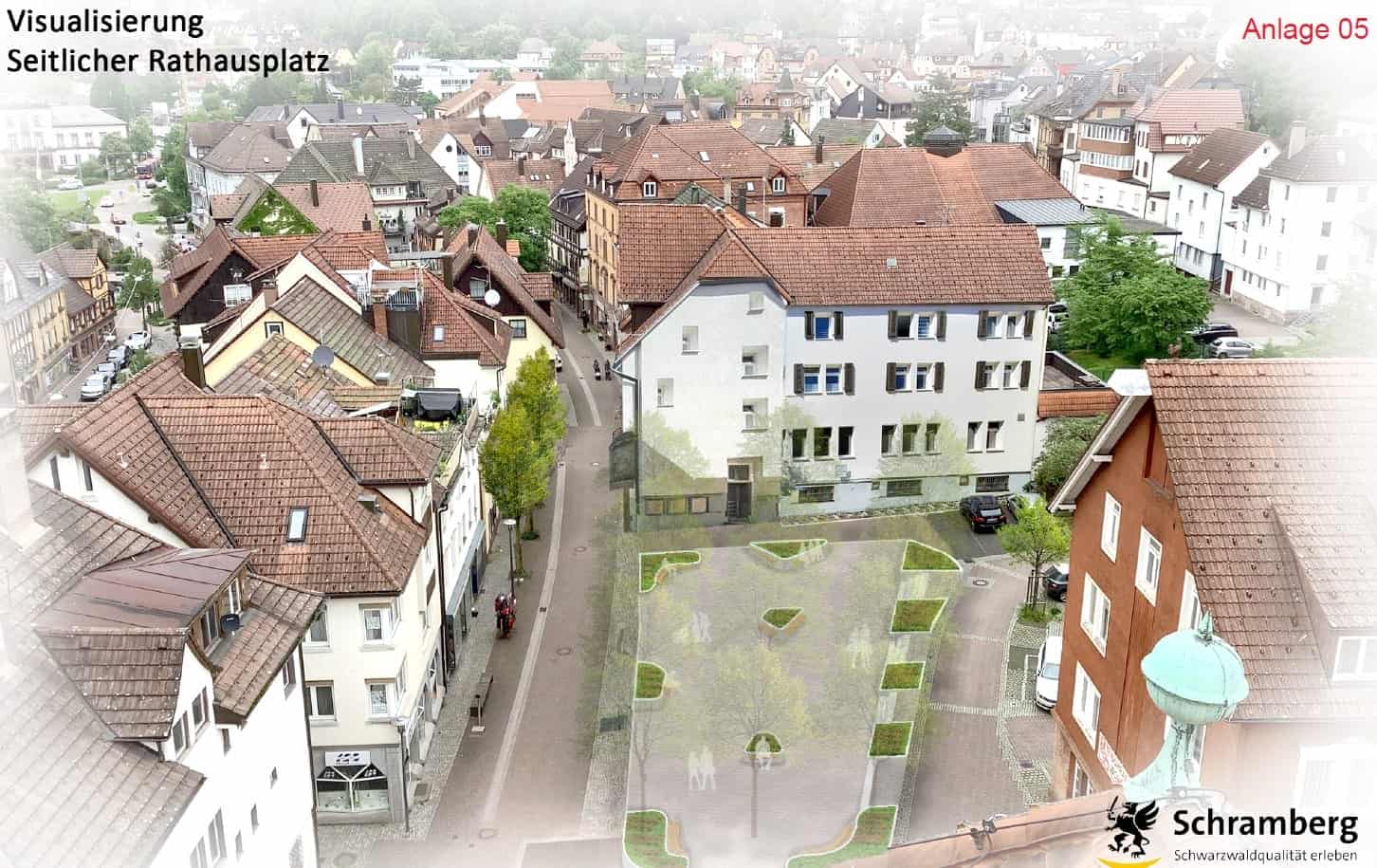 Weiter möchte die Stadt das kleine Haus Hauptstraße 20 kaufen, abbrechen lassen und einen direkte Verbindung von der Hauptstraße zur Schiltach schaffen. „Dadurch wird das Stadtzentrum vergrößert und eine direkte Achse zwischen Schiltach und Park der Zeiten geschaffen, in deren Mitte sich das Rathausumfeld befindet.“