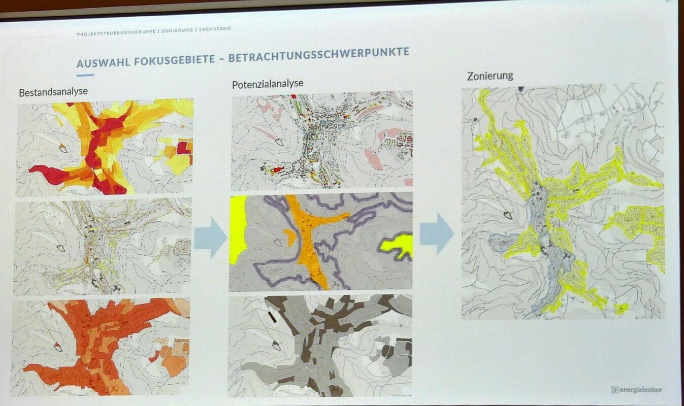 Für den Wärmeleitplan habe sein Büro vorhandene Daten mit den Daten der Schornsteinfeger abgeglichen, so Hägele. So habe man Gebäude herausgefunden, die einen höheren Sanierungsbedarf haben. „Wir haben auch geschaut, wo ginge Erdwärme, Solarthermie oder Wärme aus dem Abwasser.“