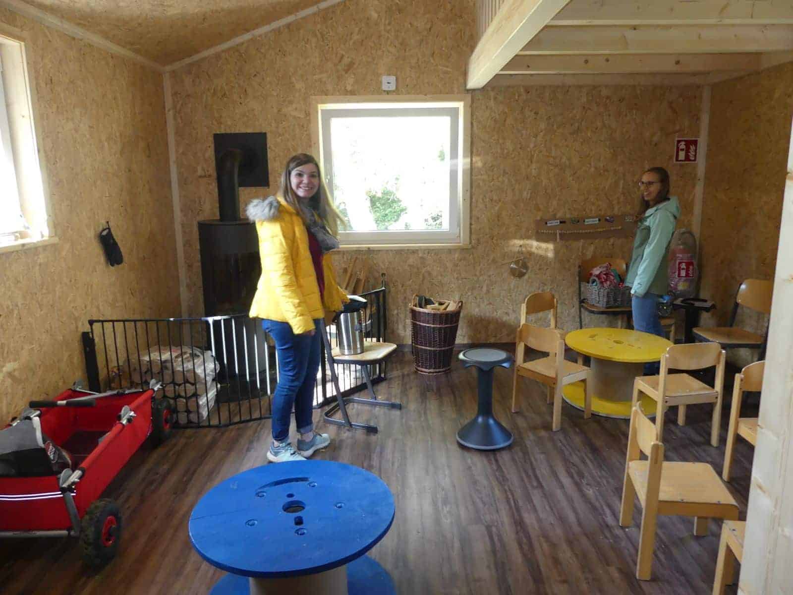 Auf die Idee, den Waldkindergarten beim Feriendorf anzusiedeln, sei Jasper Schadendorf, der Leiter des Feriendorfs gekommen. Bis die Hütte im September bezugsfertig war, habe der Waldkindergarten auch im Feriendorf einen Raum zur Verfügung gehabt.