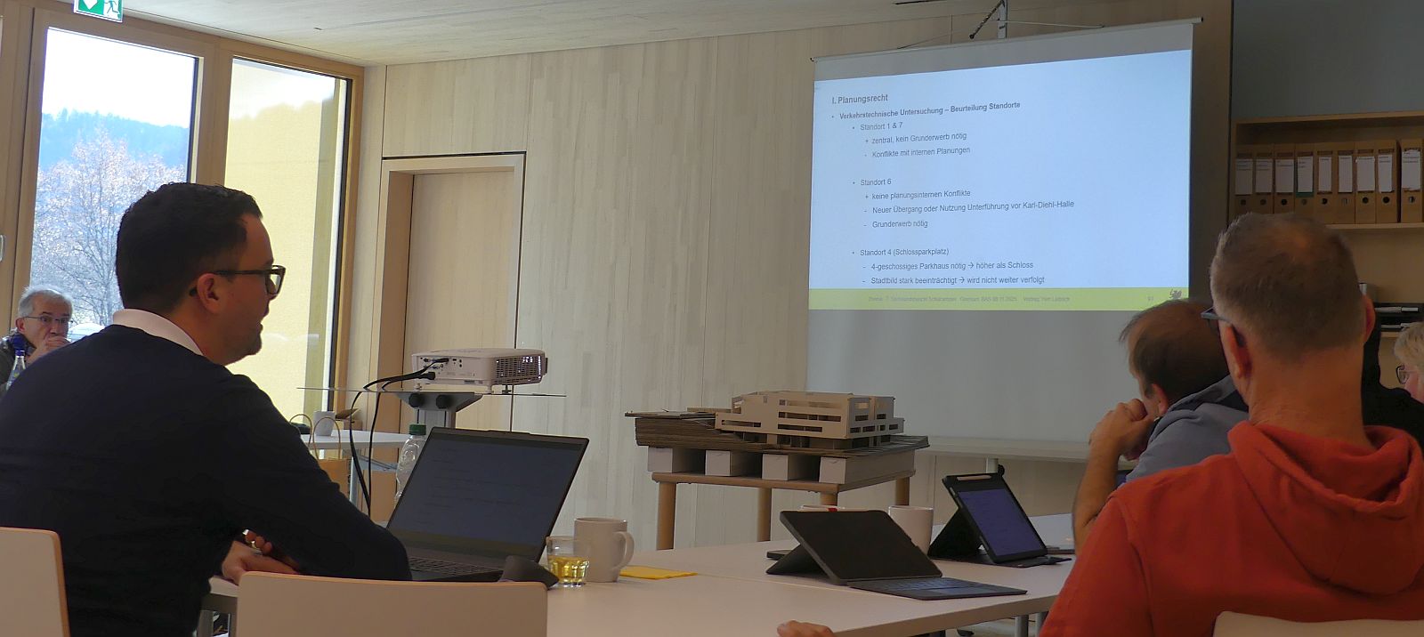 Der Parkplatz beim Schloss scheide als Fläche für ein Parkhaus aus städtebaulichen Gründen aus. Der Platz beim Bettenhaus Alesi ginge nur mit einer teuren Überführung und sei deshalb nicht möglich. Es blieben ein Platz an der Stelle des heutigen JUKS-Gebäudes oder einer an der Stelle des alten Don-Bosco Kindergartens.