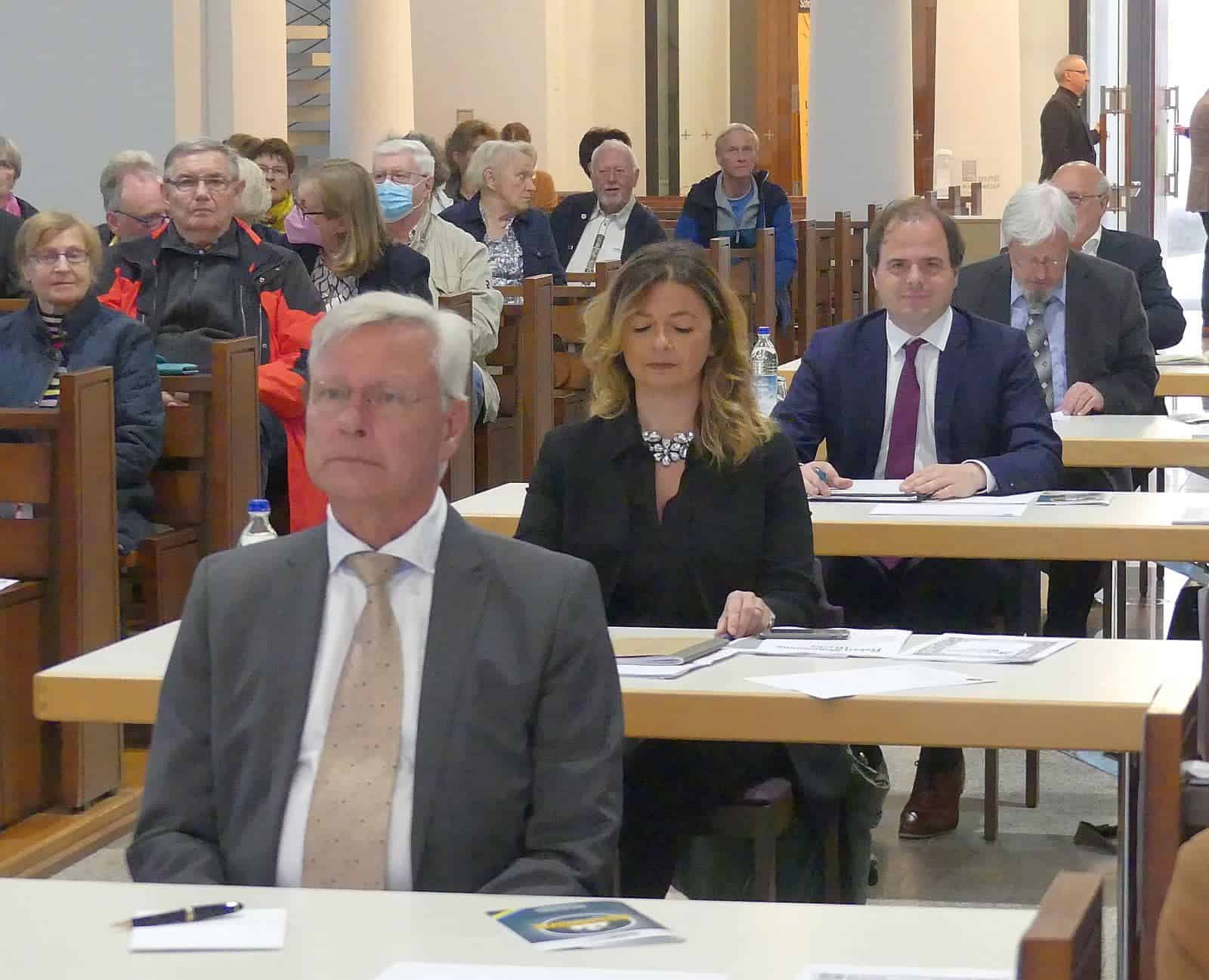 Zu den Ehren-Gästen zählten unter anderem Schrambergs Ehrenbürger Hans-Jochem Steim und Herbert O. Zinell mit seiner Frau Ruth. Oberbürgermeisterin Dorothee Eisenlohr war gekommen. Pfarrer Rüdiger Kocholl als Hausherr und seine evangelische Kollegin Martina Schlagenhauf. Thomas Herzog war in seiner Funktion als Vorsitzender des Vereins-Kuratoriums wie auch sein Vorgänger Zinell an der Kasse aktiv. Auch etliche Stadträtinnen und -räte waren gekommen.