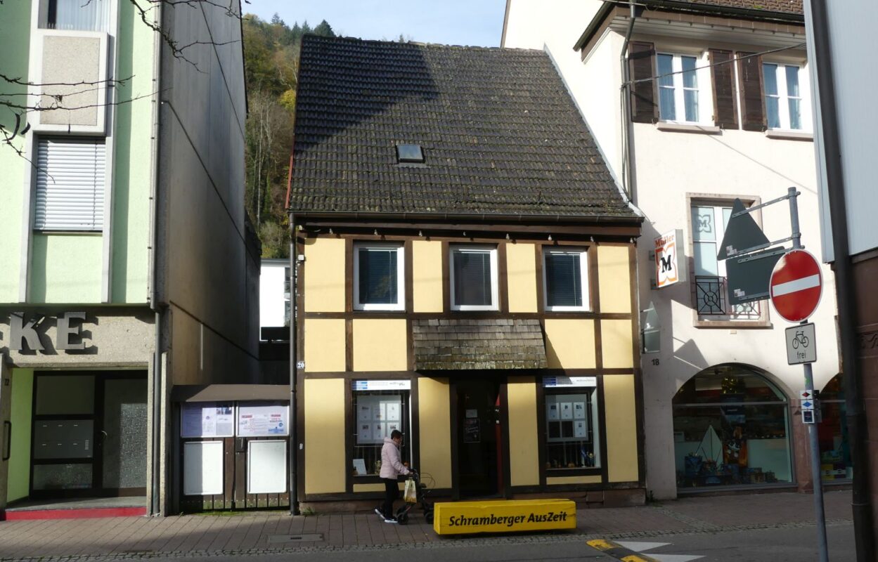 Wolfs Büro befindet sich in der früheren Filiale des Buchhändlers Glenz. Da die Stadt das Gebäude nicht erwerben konnte, war der Plan gescheitert, an dieser Stelle einen Durchbruch zur Schiltach zu schaffen und das Schiltachufer in diesem Zuge zu öffnen.