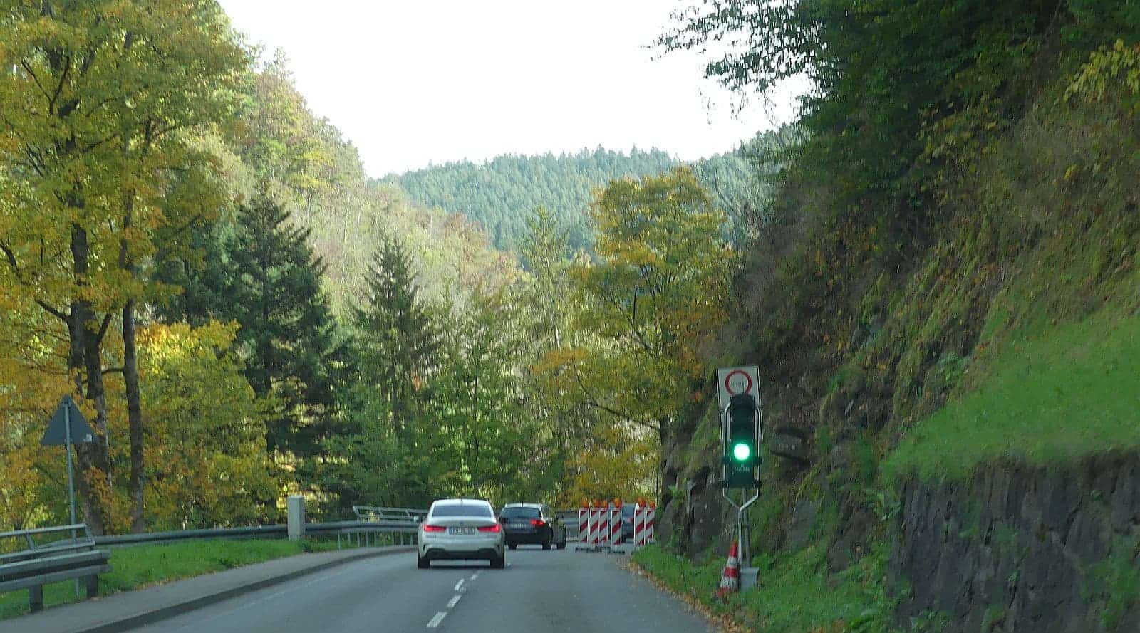 Um weiteres Unheil zu verhindern, hatte die Straßenmeisterei die einseitige Sperre eingerichtet. Eine Ampel regelt seit Ende September den Verkehr. Wie lange noch, ist noch unklar. Zunächst hätten Fachleute den Hang nach weiteren losen Steinen abgesucht, berichtet Peter Laube vom Regierungspräsidium Freiburg, Außenstelle Donaueschingen. „Teilweise werden wir die so beräumen“, sagt Laube. Auch weiter oben im Wald sei loses Material.