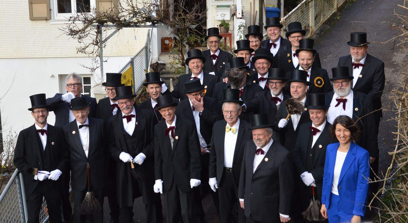 Dunkel gekleidete Herren sind im Städtle unterwegs. Für den Kirchgang an Drei-König? Dazu passen die teils ziemlich zerbeulten Zylinder nicht so recht. Außerdem lenken sie ihre Schritte (oder Autos) eher stadtauswärts als zu Heilig-Geist oder Stadtkirche.