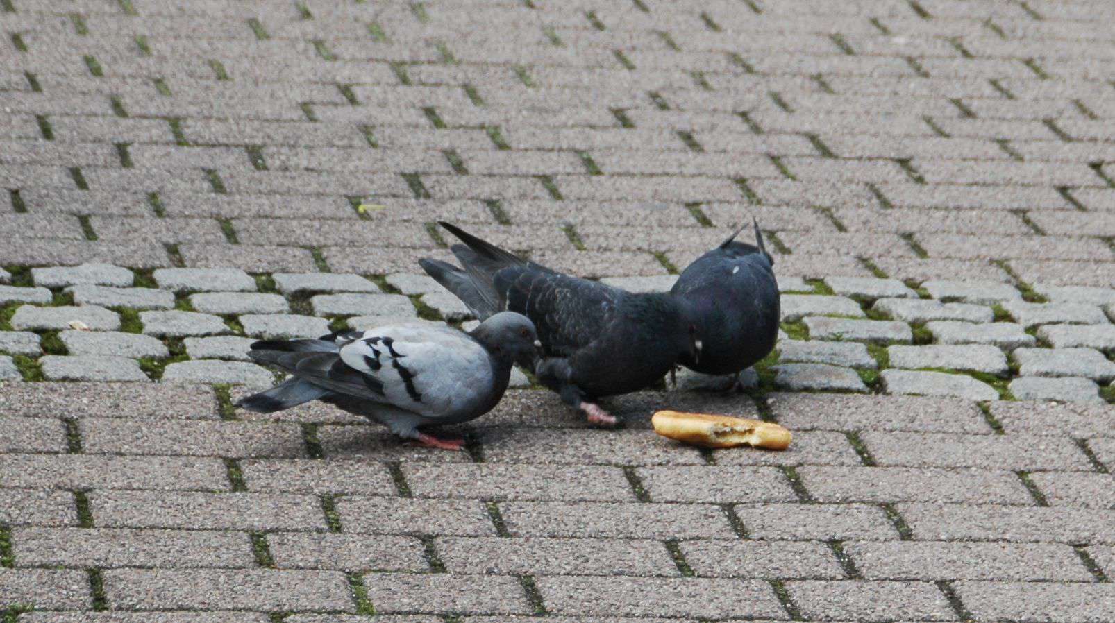 Im Städtle sieht man immer wieder Menschen, die den Tauben Brotkrumen zuwerfen, von der Eiswaffel Stückle abbrechen. Manchmal fällt auch schon eine halbe Brezel auf den Gehweg und wird eifrig aufgepickt. Allerdings: Erlaubt ist das nicht. Wenn der Gemeindevollzugsdienst einen beim Taubenfüttern erwischt, kann das 20 Euro kosten.