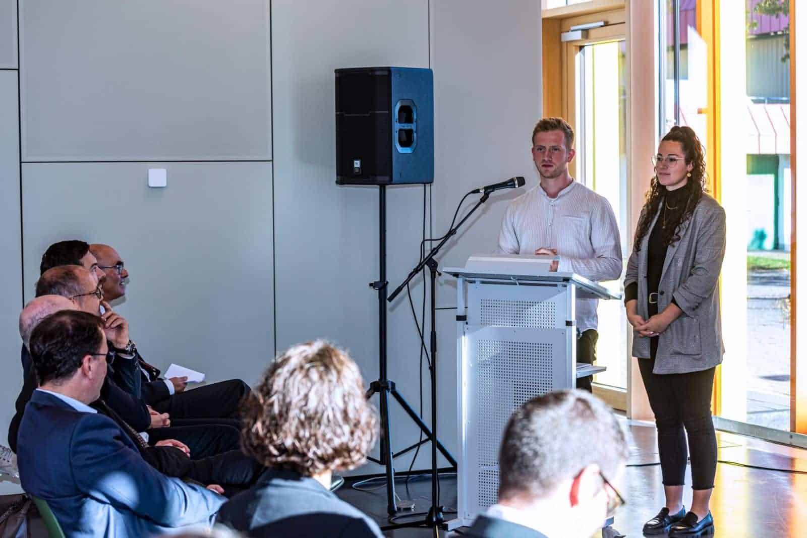 Stefan Aßfalg und Maike Rieble, Technikerschüler im zweiten Jahr ihrer Ausbildung, berichteten für die Schüler der Technikerschule erfrischend vom Schüleralltag, ihren Herausforderungen und ereignisreichen Exkursionen. Die Technikerarbeit und die anstehenden Prüfungen würden zwar viel Anstrengungen kosten, allerdings fühlten sie sich gut unterstützt und freuten sich auf ihren Abschluss und die neuen Aufgaben in den Unternehmen.