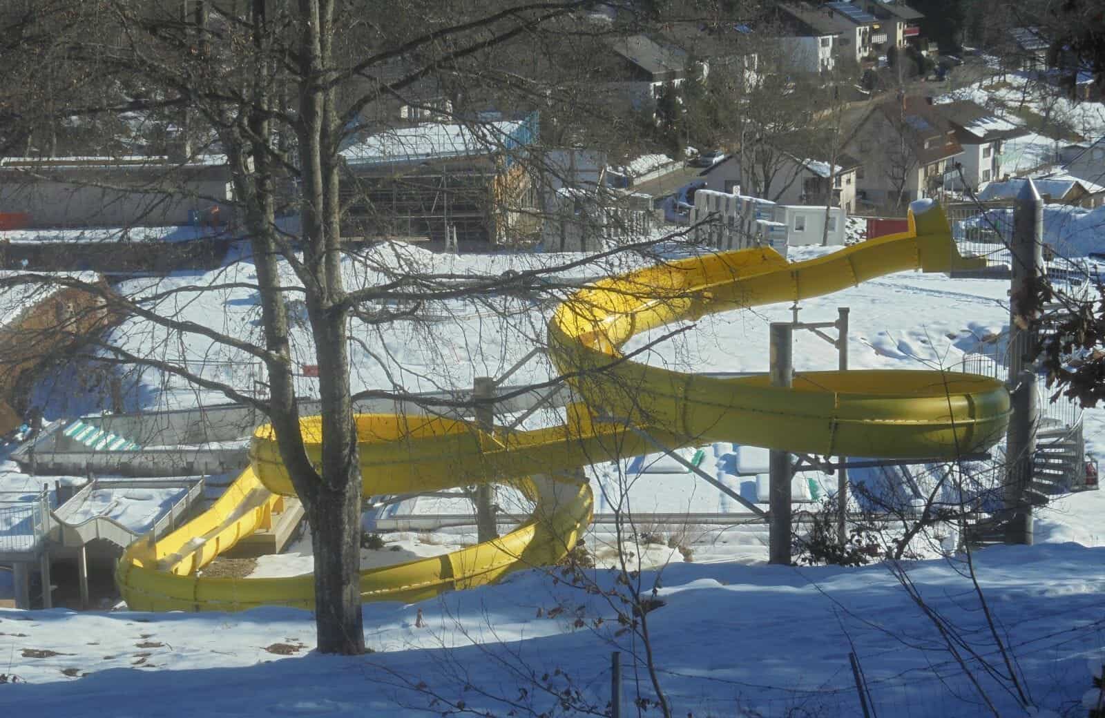 Das modernisierte Freibad unter eine Schneedecke im Januar. Foto: him