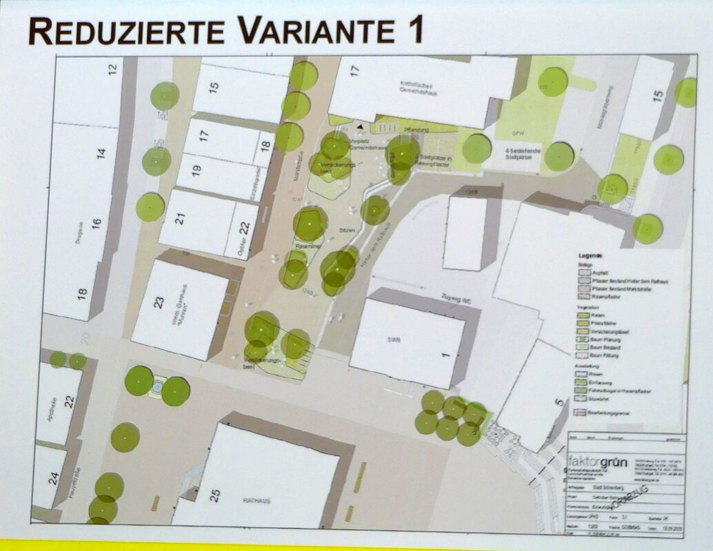 Statt gut 700.000 Euro liege man jetzt bei etwa 460.000 Euro. Das Regierungspräsidium (RP) werde etwa 156.000 Euro zuschießen, sodass die Stadt das Plätzle für gut 300.000 Euro bekomme. Es gehe der Verwaltung um Klimaschutz und Aufenthaltsqualität, betonte der Stadtplaner.