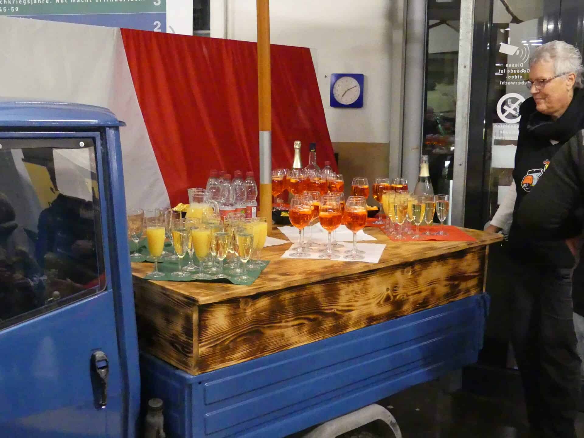 Die italienische Tricolore grüßte die Besucherinnen und Besucher gleich am Eingang des Auto- und Uhrenmuseums. Davor ein Piaggio-Wägelchen mit Drinks und Antipasti. Und am Keyboard unterhielt am Freitagabend Paolo Fanelli mit italienischen Schlagern. Der Grund: Die Museumsleute eröffneten eine Sonderausstellung zur Vespa.
