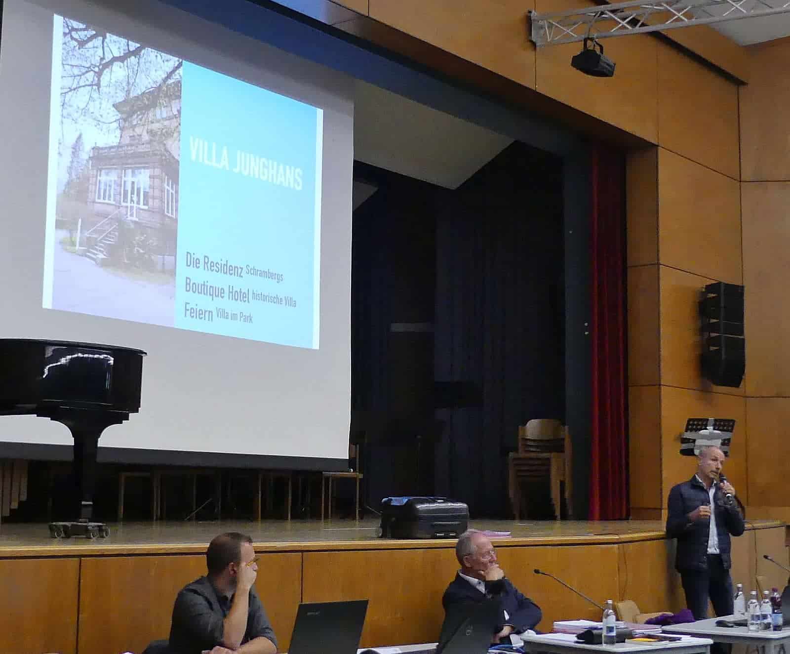 Nimmt man die Aufregung in Leserbriefen und Social-Mediakanälen beim Thema „Villa Junghans“ zum Maßstab, war der Besuch der Gemeinderatssitzung am Donnerstag bescheiden. Vielleicht zehn Zuhörerinnen und Zuhörer hatten den Weg in die Aula gefunden. Der Vortrag des Gastro-Experten Ingo Wessel und die anschließende Debatte im Ratsgremium hätten beim ein oder anderen sicher zum reflektierteren Nachdenken geführt, als es in so manchen Äußerungen im Internet zum Ausdruck kam.
