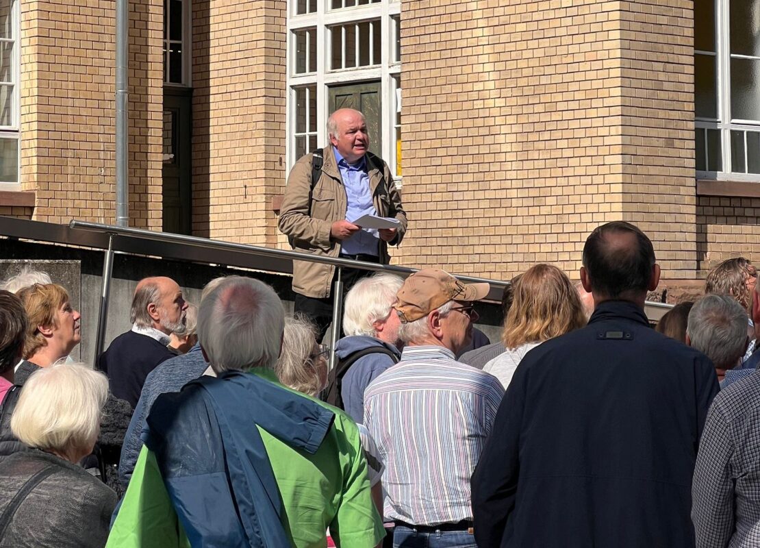 Zur Führung am Tag des offenen Denkmals hat David Kuhner in einem ersten Teil über die Gründerzeit bis zur Übernahme durch Junghans berichtet. Nun geht es um die weitere Entwicklung des großen Industrieareals bis heute, über die der Historiker und Kulturwissenschaftler Carsten Kohlmann berichtete.