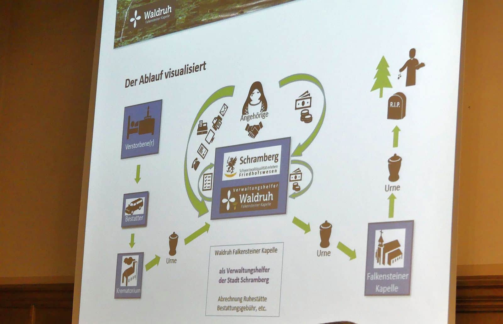 „Waldruh“ biete die Möglichkeit, wieder Familiengräber anzubieten. Langfristig habe die Stadt die Chance die Friedhöfe zu reduzieren. Man müsse die Verträge so gestalten, dass „für die Stadt Geld herauskommt“.